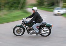 Jørgen på sin grønne Bonneville -04, Henrik på sin sorte Bonneville -04, Claus på en