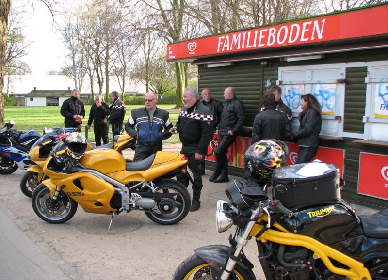 ikke tilkørt endnu. Så har vi Henrik på sin sorte Bonneville -04, Kaj på en sølv