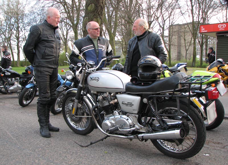 også til Jan der kommer på en sølv Norton Commando mk3 850cc -77. Så har vi de gamle