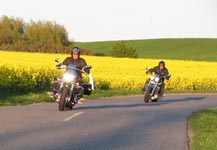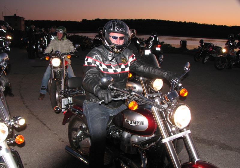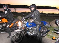 Rocket III -05, Niels på en hvid/orange Bonneville T100 -06, Finn og Lene på en blå