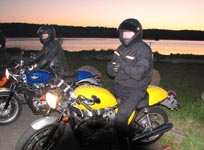 og nogle kæmpetasker. Derefter har vi Peter på en gule Thruxton -05, og en anden Peter