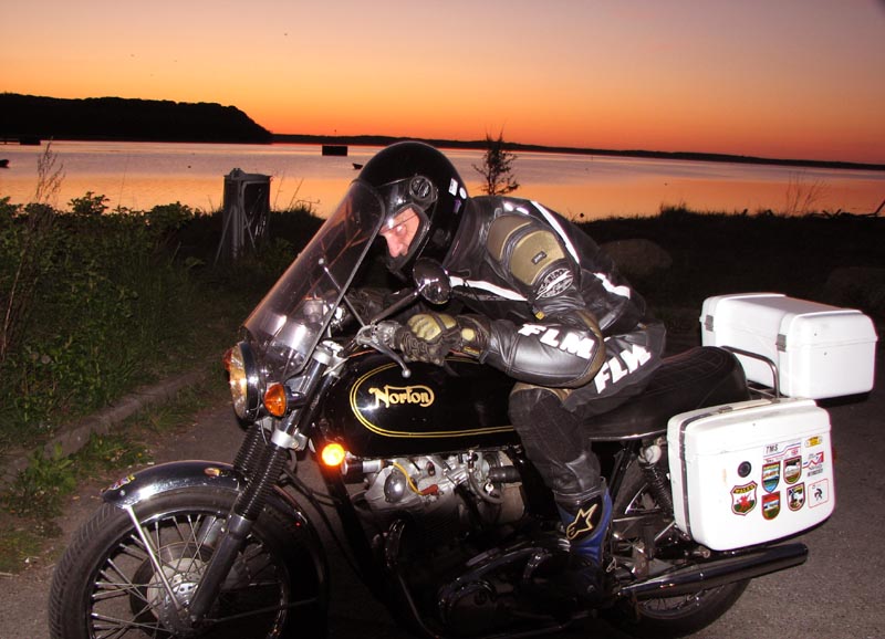 sin fine gamle Norton Commado 750cc -72. Comandoen er udstyret til touring med frontrude