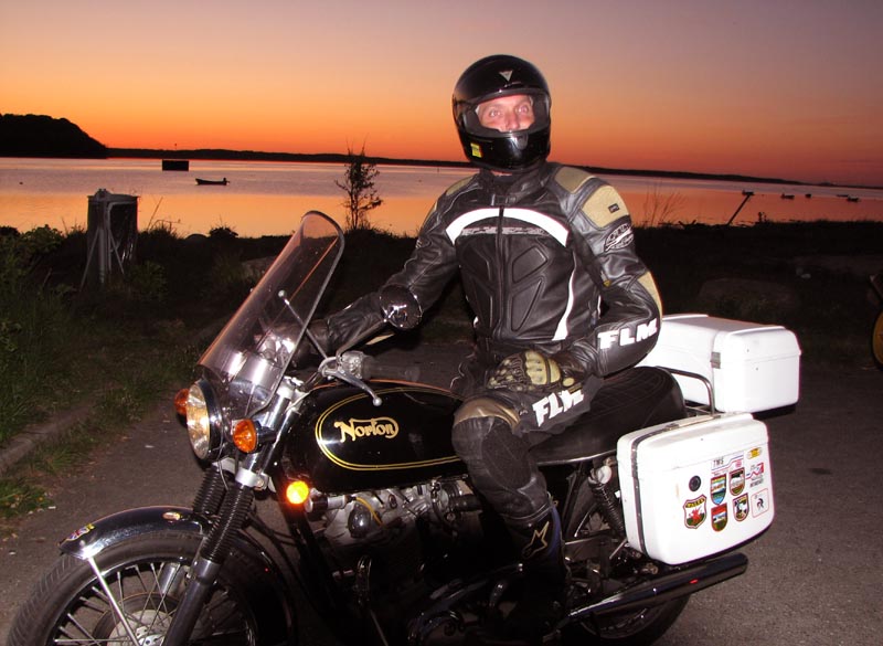1) og 2) Lars kører Commando i solnedgangen.