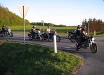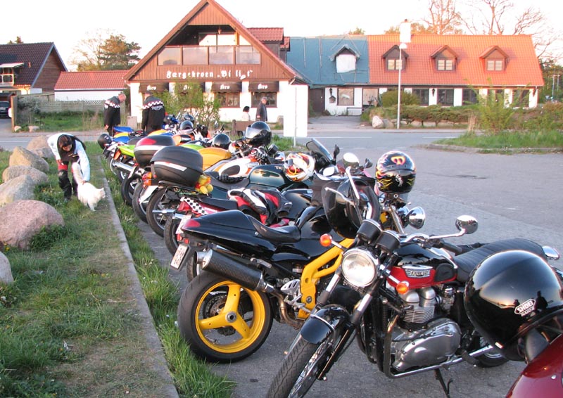Michael! Ib på sin sorte Daytona 955 -03, Lars på en mørkblå Sprint RS -01, Fatma på en