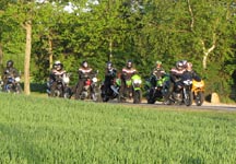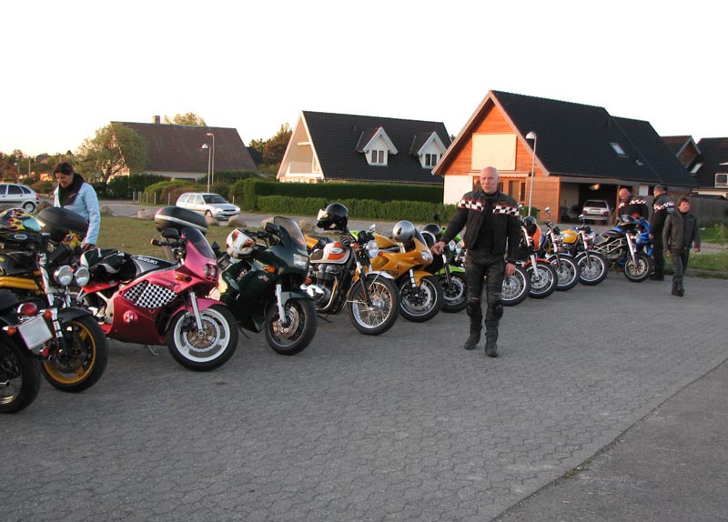 blå TT600 -02, Tonni på en GSXR1000 -06, Ole og Annika på den gule Daytona 955 -00, Claus