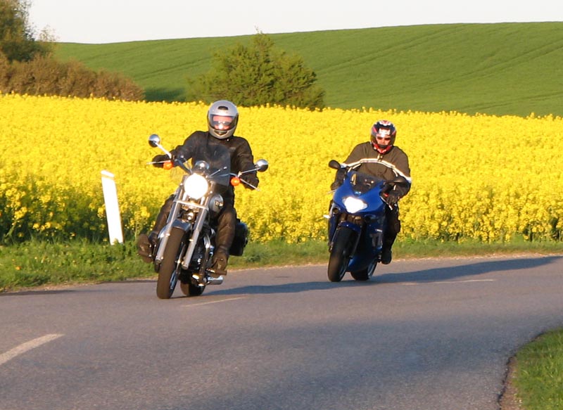 Peter på en rød Speedmaster -04, Michael på en sort Suzuki Intruder 1800 -07. Velkommen