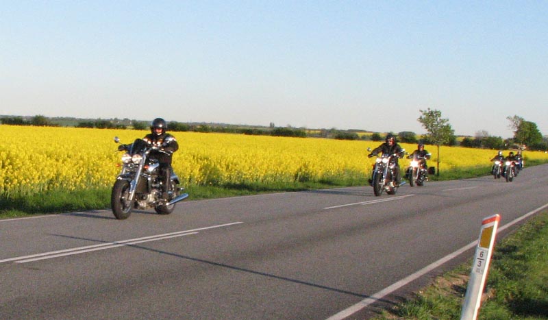 på en blå Sprint RS -04. Så har vi den hvidhårede Flemming på en blå/hvid Yamaha XJ1300 -05.
