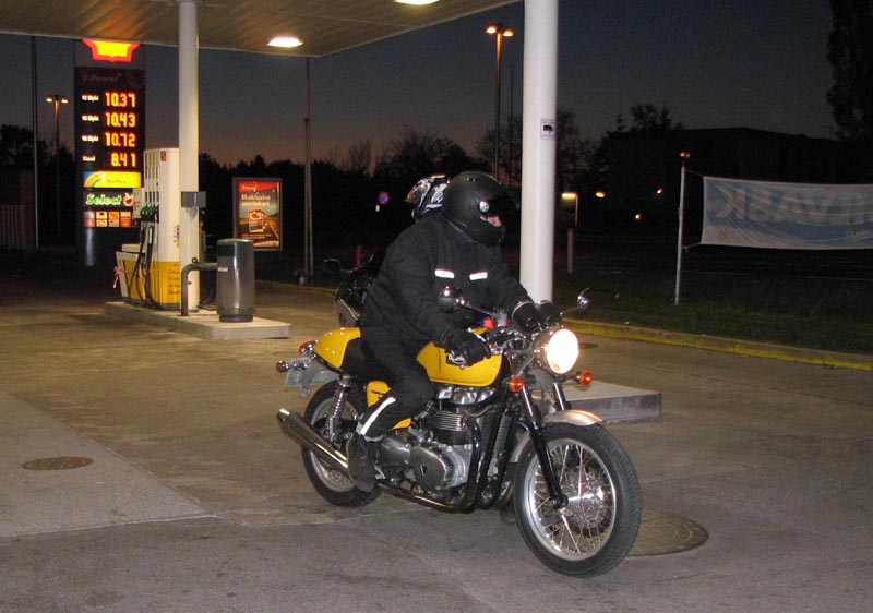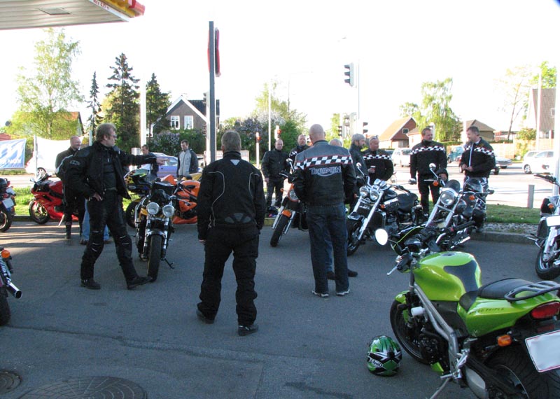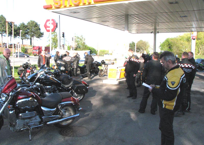 Heldigvis hade jeg placeret de nyeste deltager foran i køen, og jeg kørte ud fra tankstationen