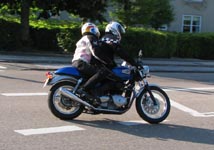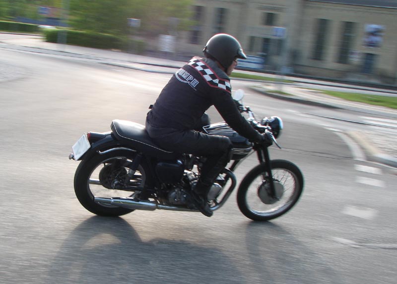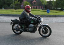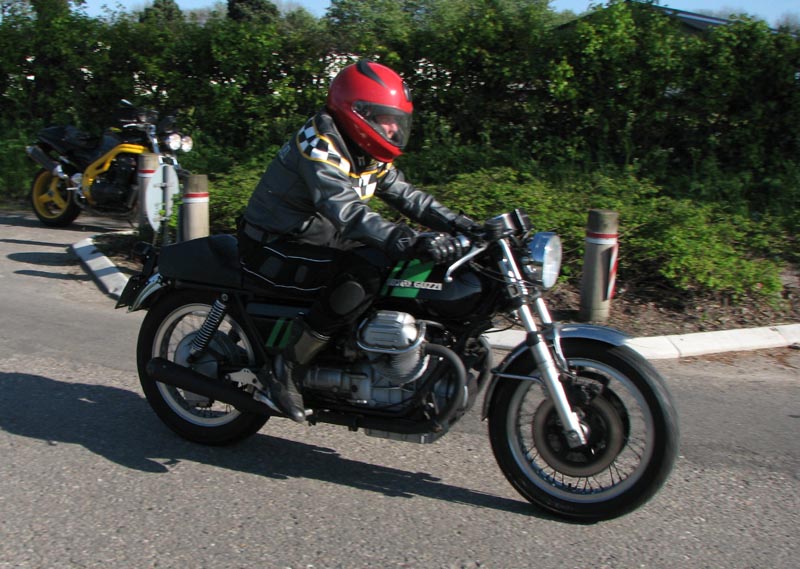 John kørte på en sort-grøn Moto Guzzi V7 Sport -74, og mig på den