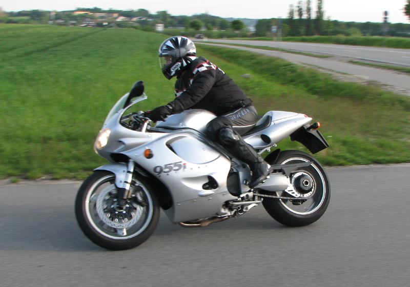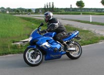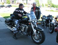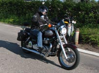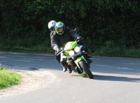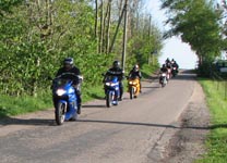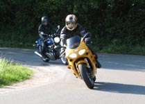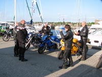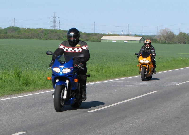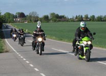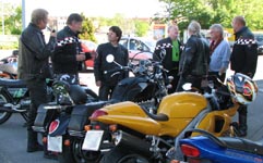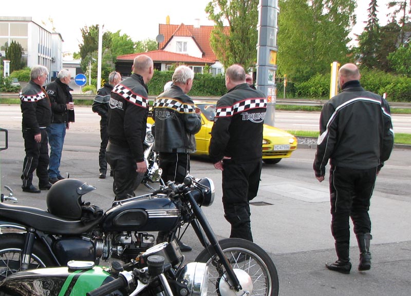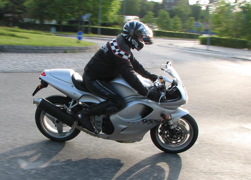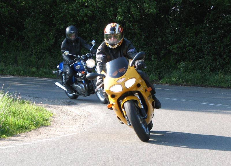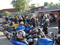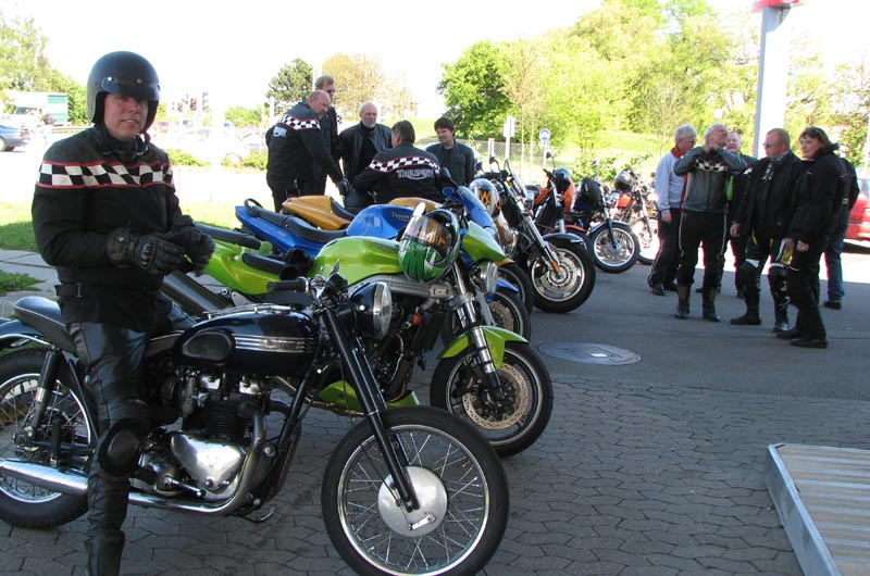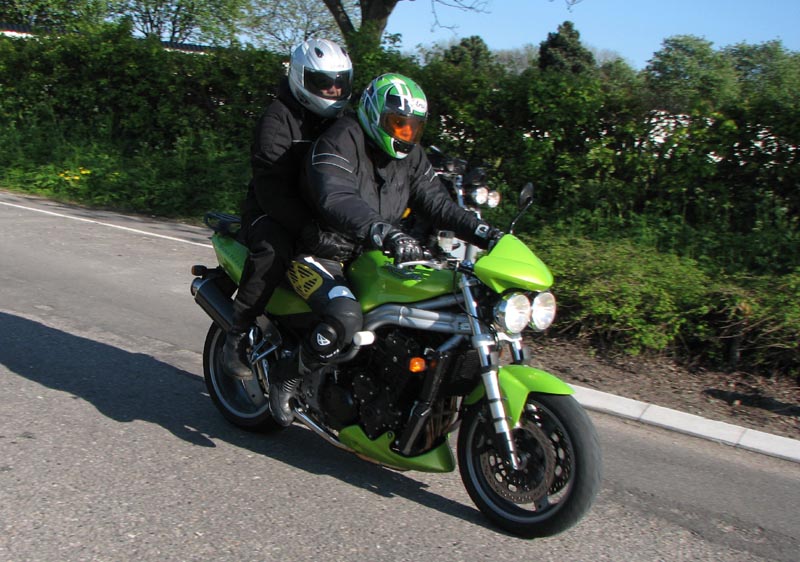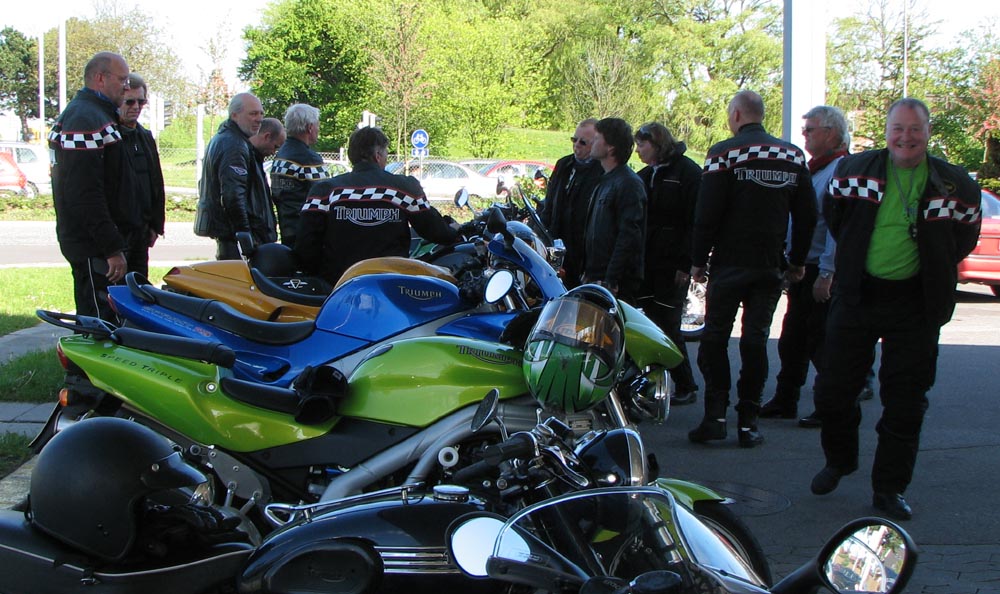 en grøn Speed Triple -04, Peter på en rød/sølv America -05,