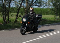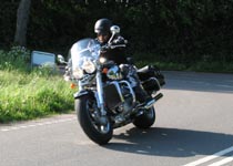 Poul på en mørkegrøn Trophy 1200 -95, Keld og Lotte på en blå
