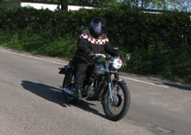 Steen på en blå Thruxton -06, Hans på den speciallakerede sort-røde