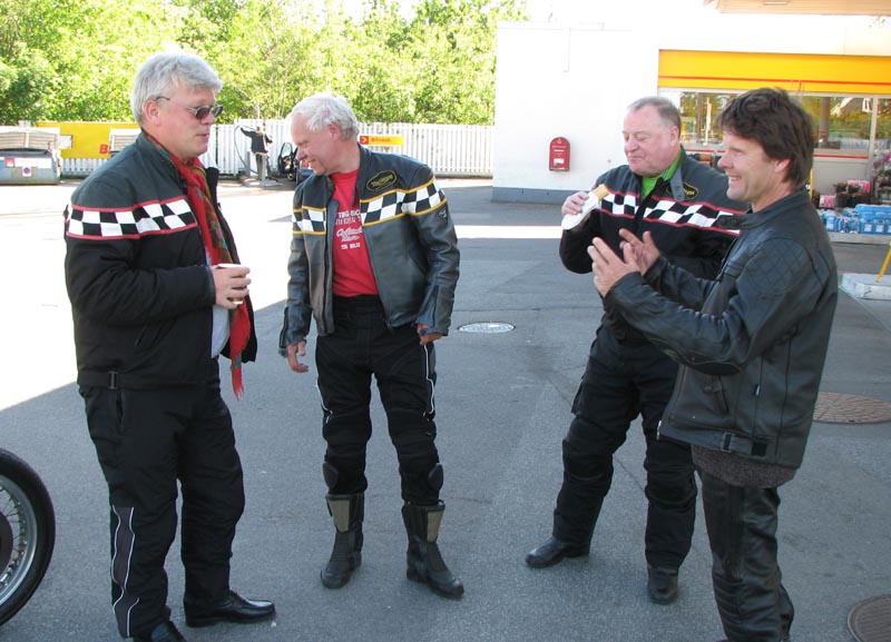 deltagerne kører ind på tanken for at nyde en kaffe og sidste sluder før