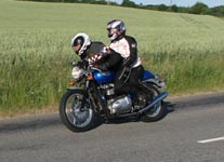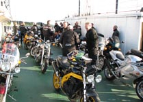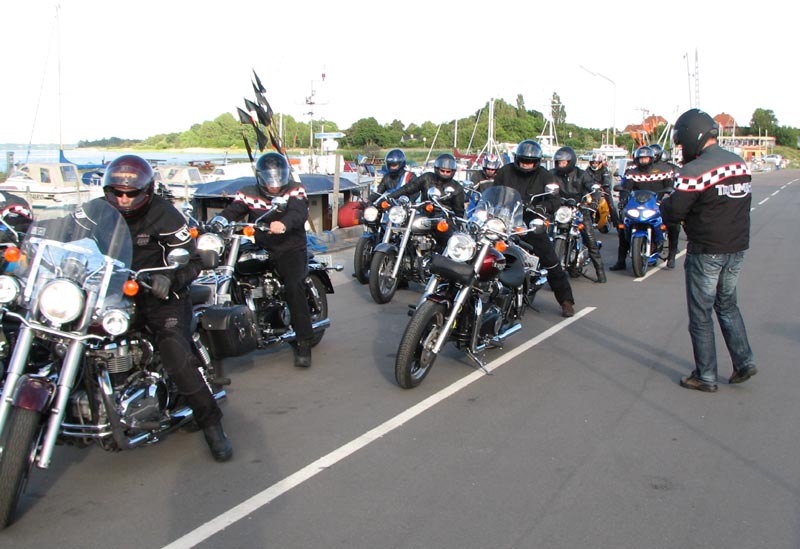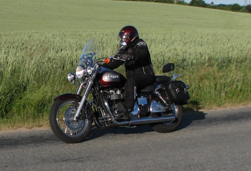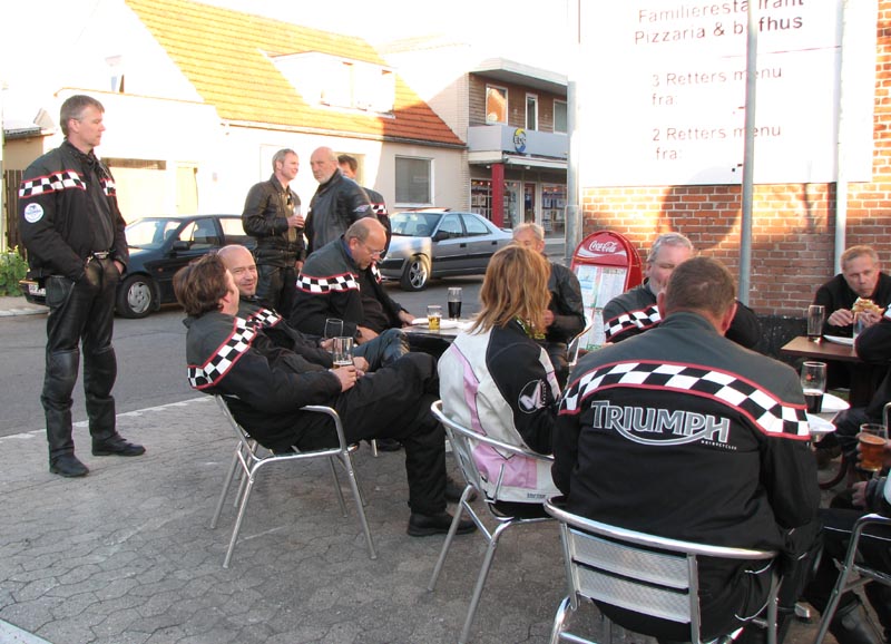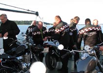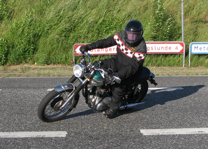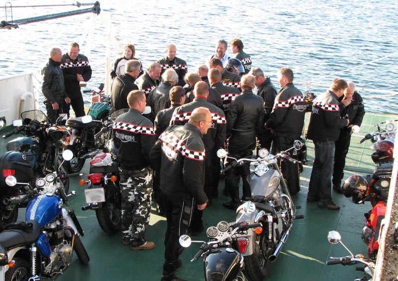 på en gammel fin Bonneville. Og så nåede vi færgen ved Kulhuse som tog os over til Sølager.