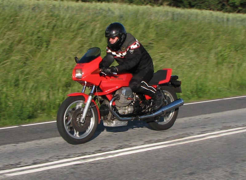 fanget af 2 ekstra deltagere, Jannik på en rød Moto Guzzi Le Mans 850 -84 og Palle