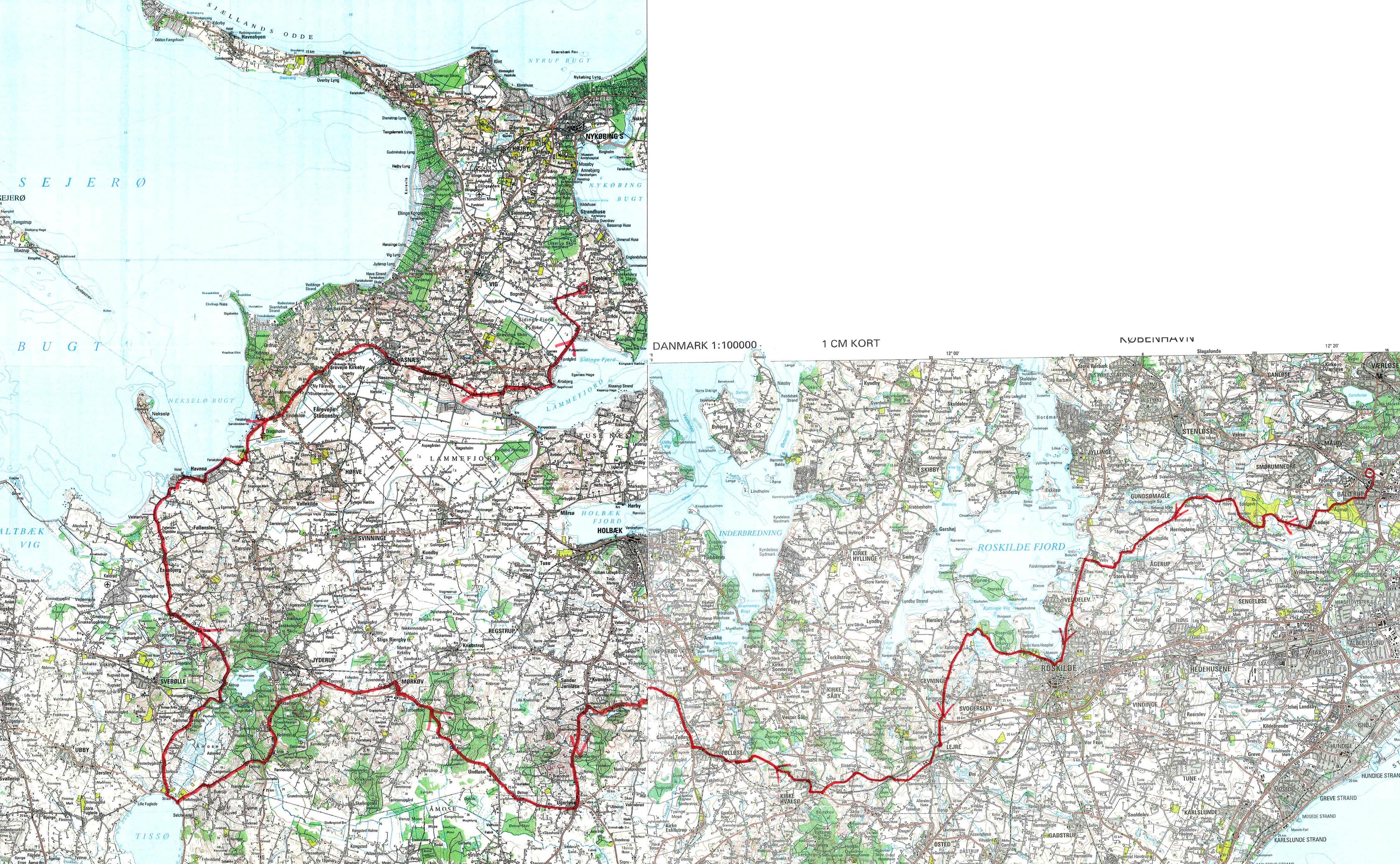 sydvest gennem Lejre og Kirke Hvalsø og Tølløse. Ved Roskilde er også vejene blevet