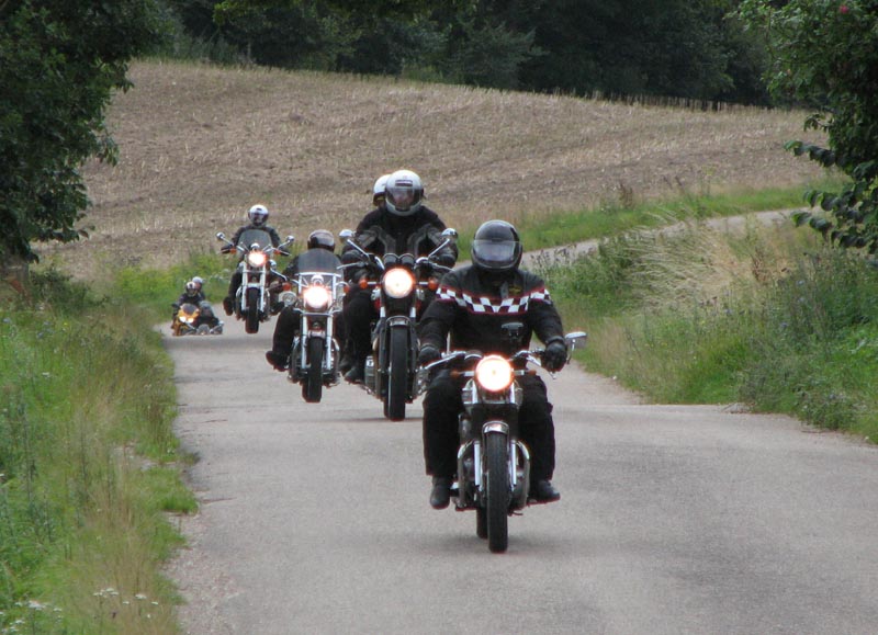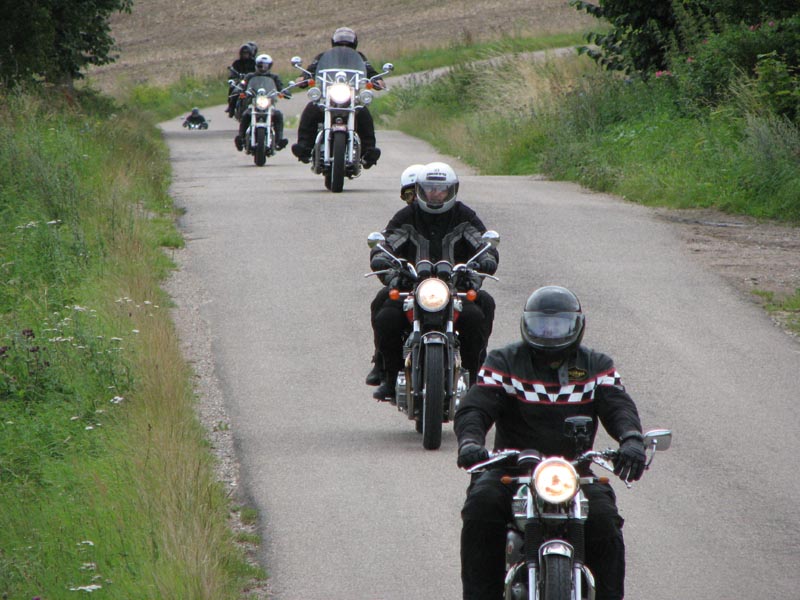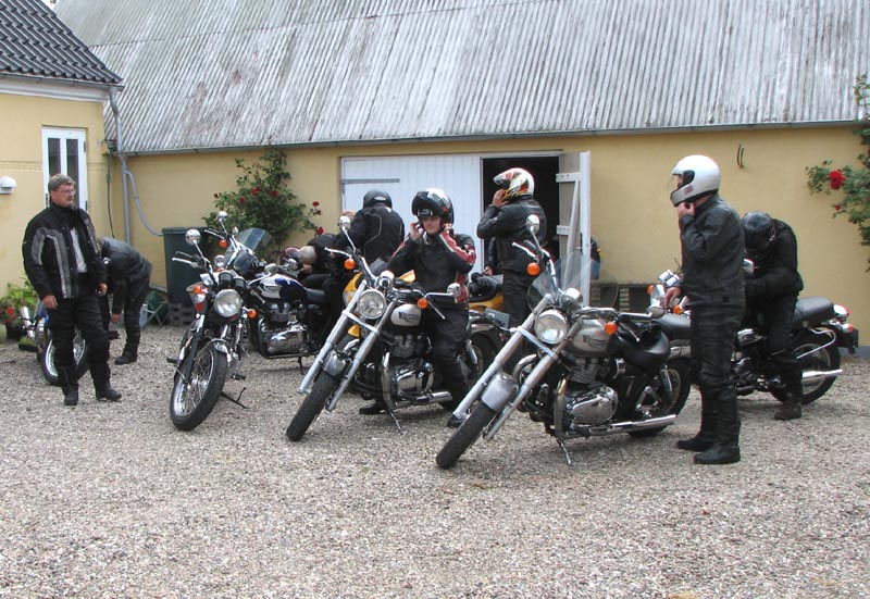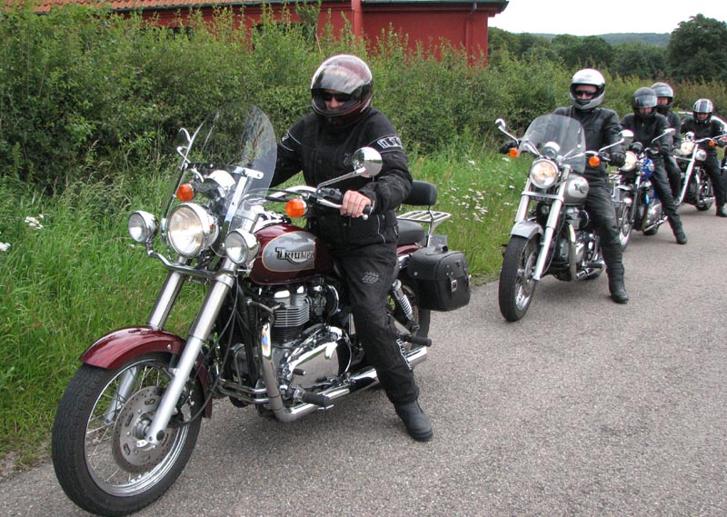 vi høre nogle motorcykler, der nærmer sig. Det er Triumph gutterne (både drenge og piger).