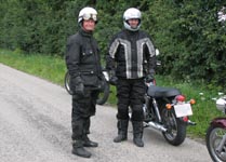 med indbygget sidevogn og vi går alle tre over for at hilse på. De andre kikker med store