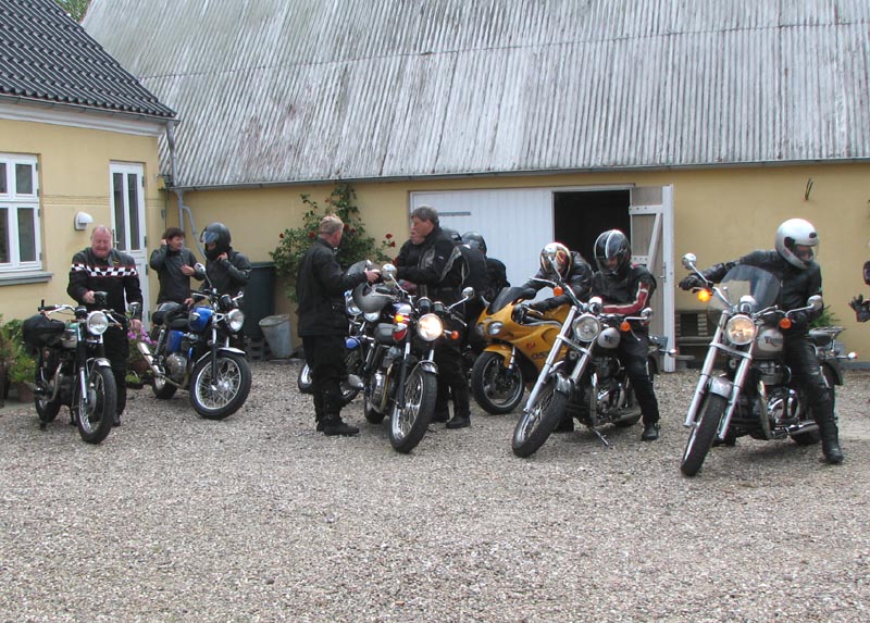 fald står 5-6 cykler. Med lidt held bliver vi over 10. Jeg klatrer af min Triumph-Alfa