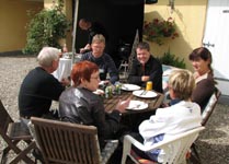 gruppen ved vestkysten. En lille time senere sidder vi og får lidt bøfsandwich på havnen