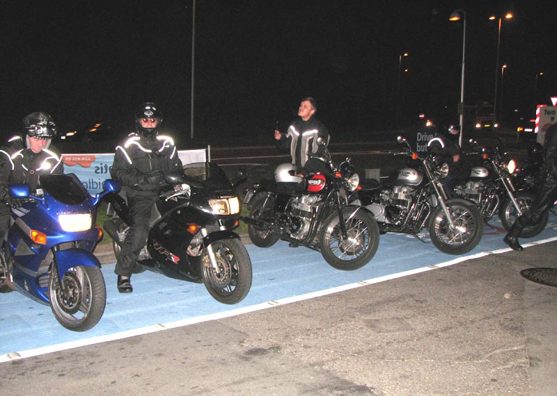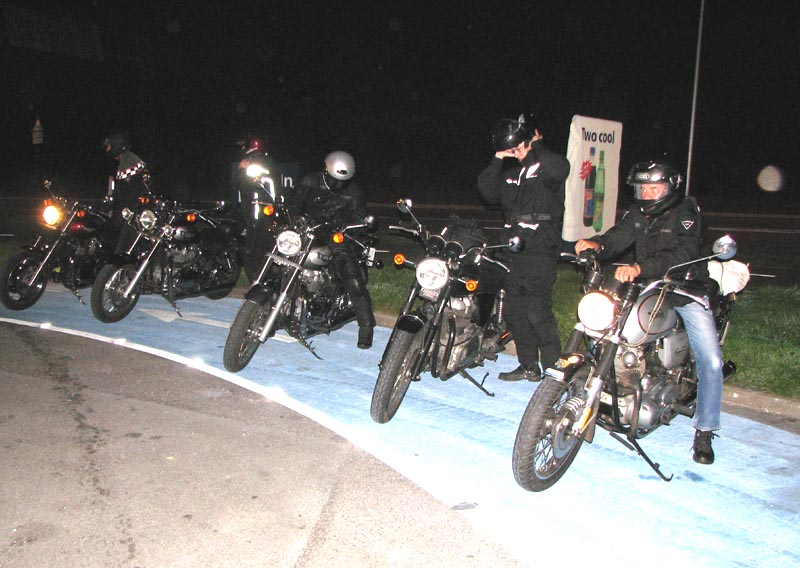 Så har vi nogle nye deltagere. Thomas på en sort Thruxton -06, Finn på en grøn America -06,