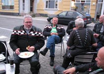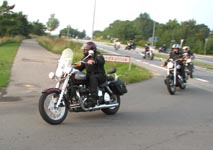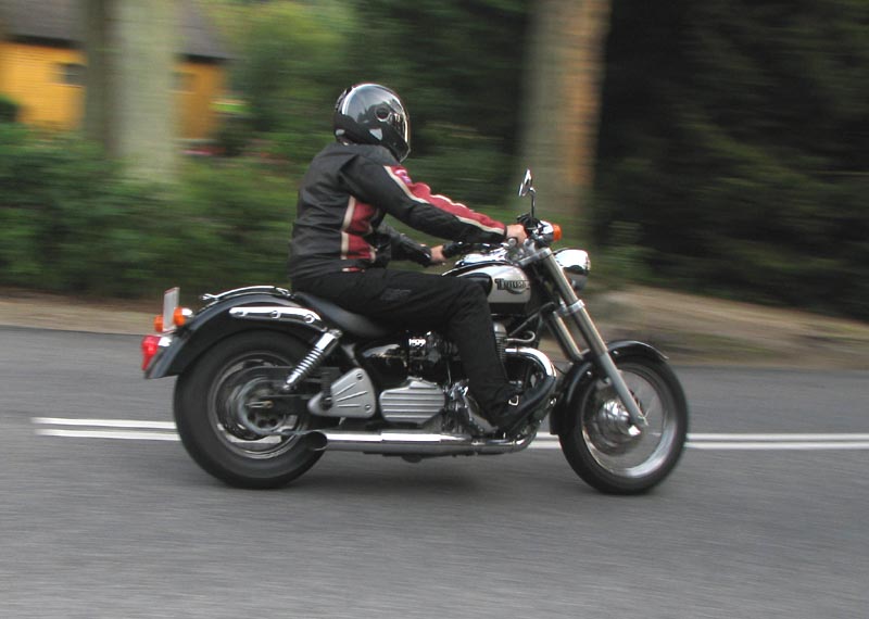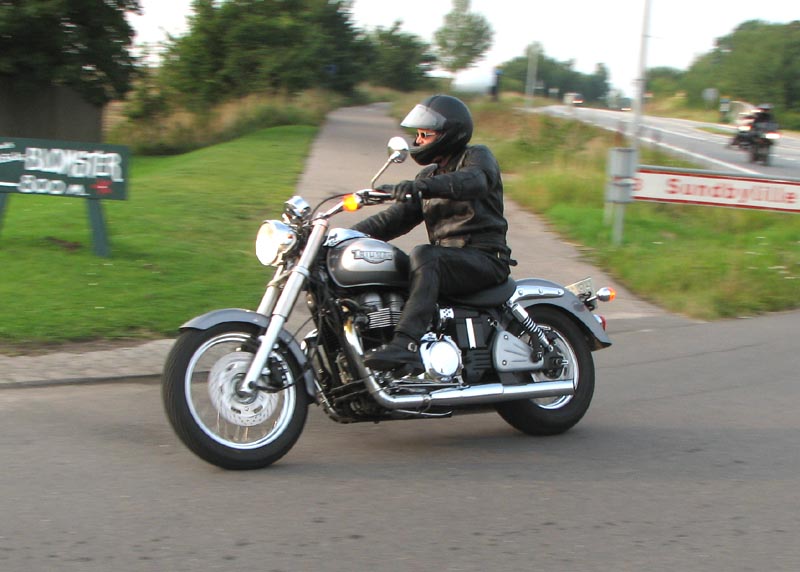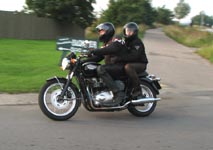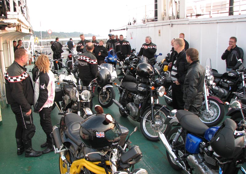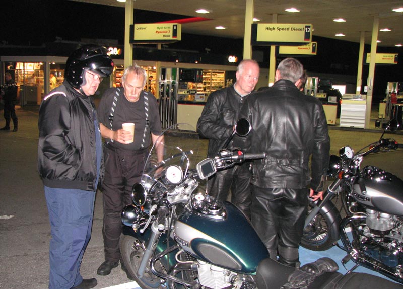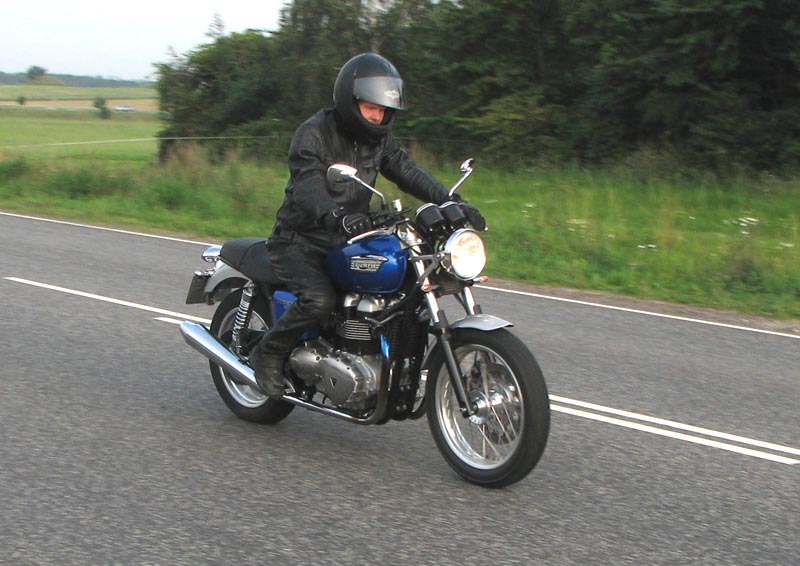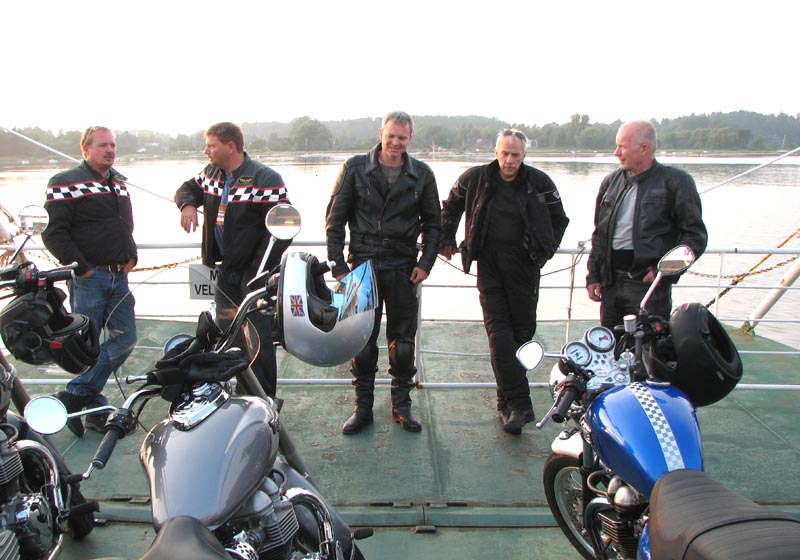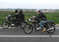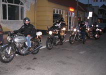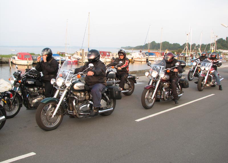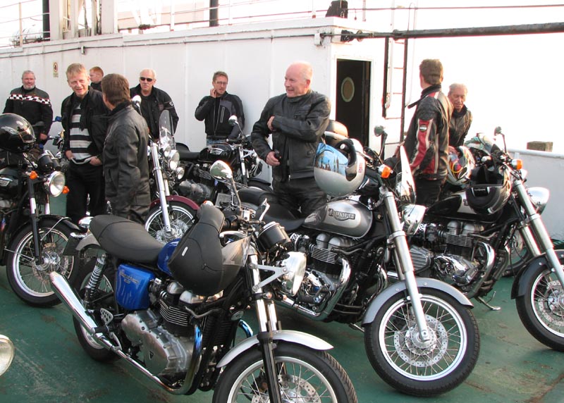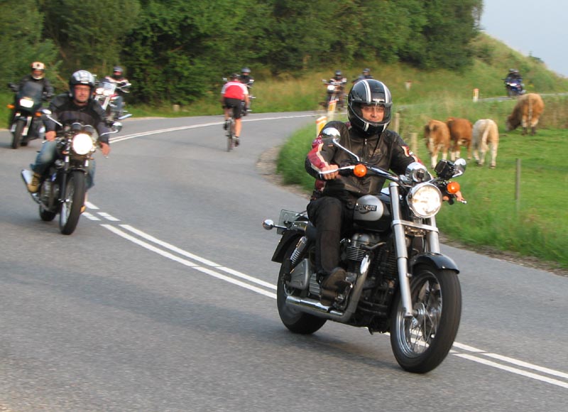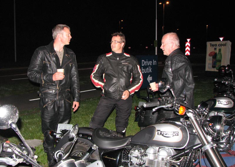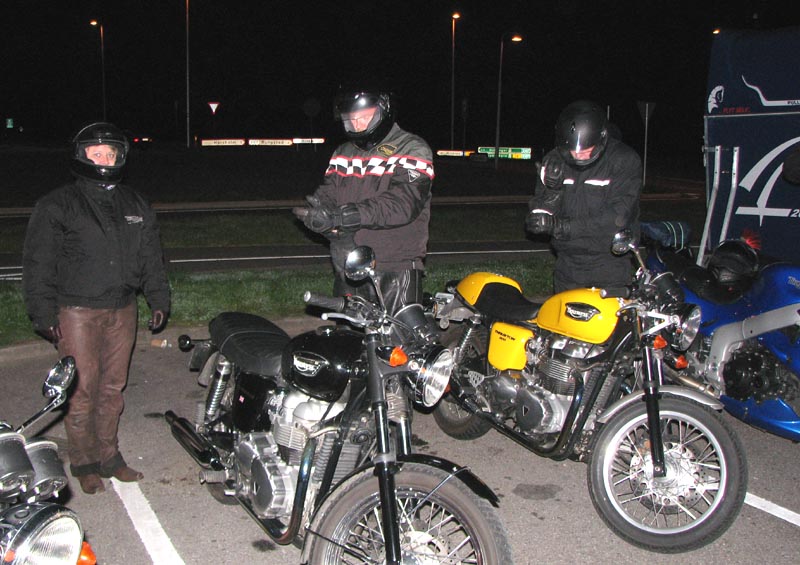 Thruxton -06, Hans på en sort/rød Bonneville -04, Frank på en sølv Daytona 955 -00,