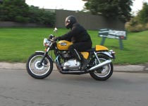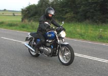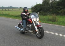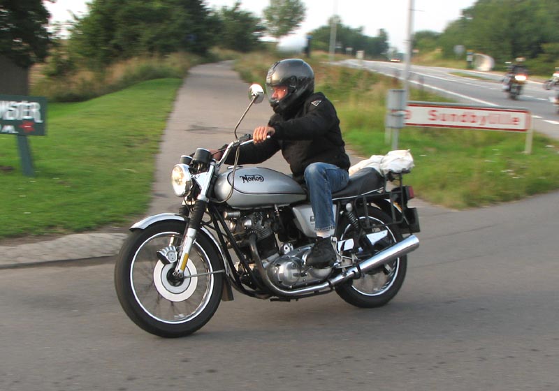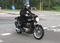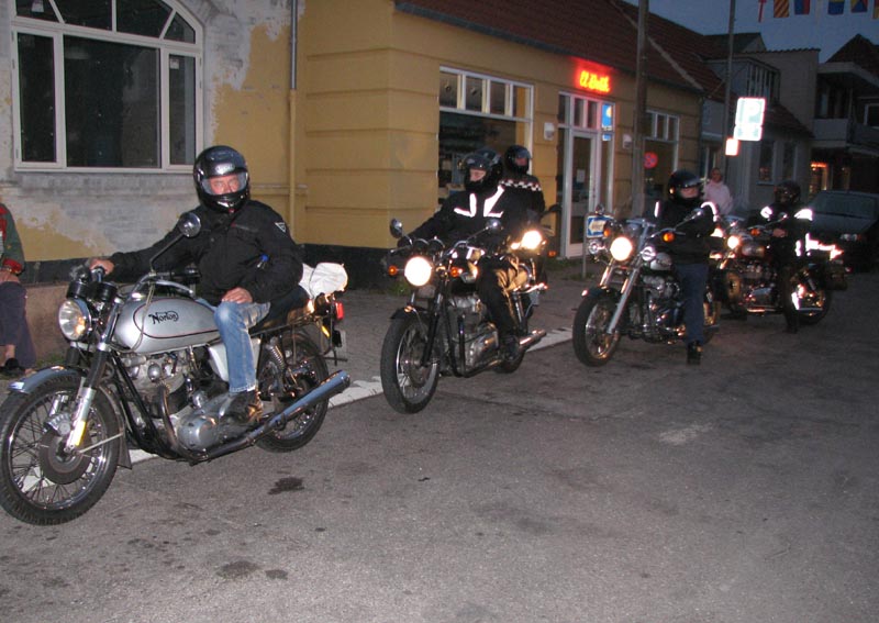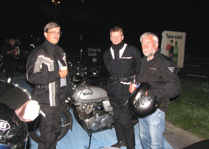 Martin på en sort America -03, Jan på en sølv Norton Commando -72, og mig selv på den