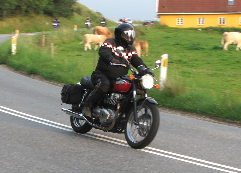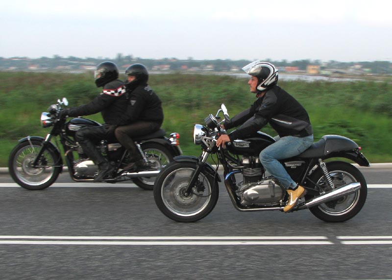 Michael på en sort DUcati Monster 800 -04, Poul på en sort/rød Bonneville T100 -07,
