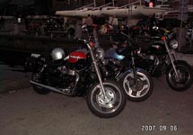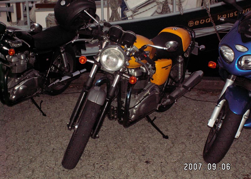 og Henrik på en sort Bonneville fra -04, Martin på en sort/sølv Speedmaster -03, Peter på
