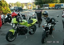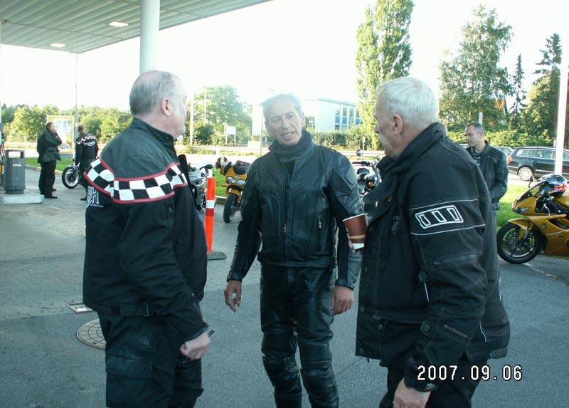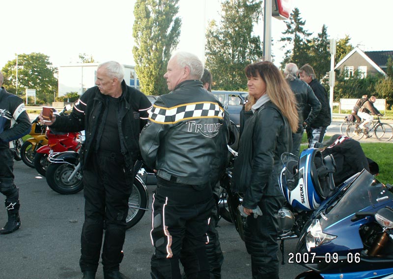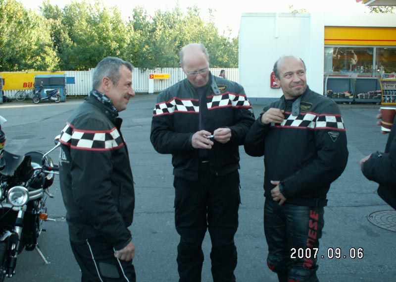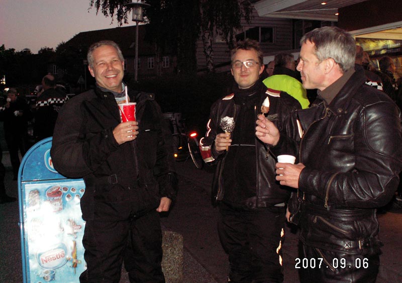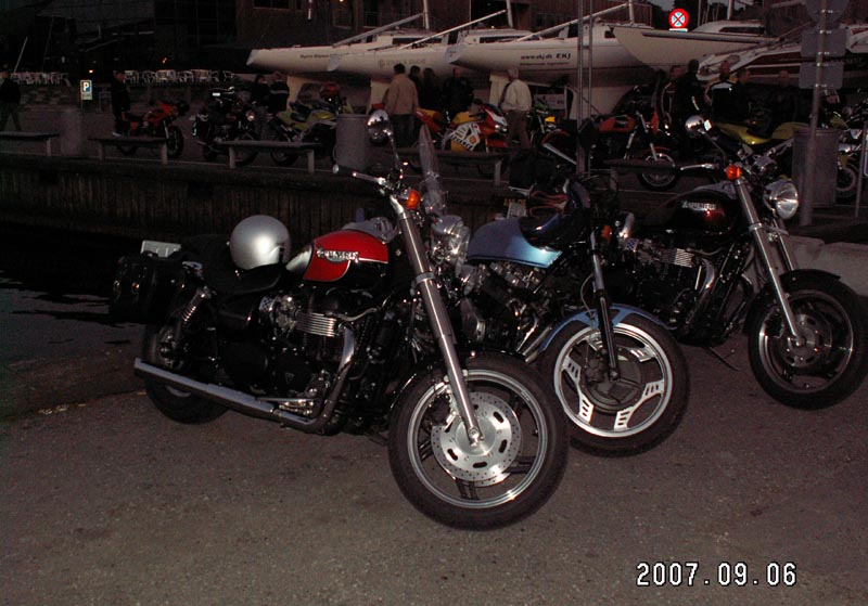 blå/hvid Suzuki R GSX fra -06, Jørgen på en sort Rocket III fra -06, André på en hvid