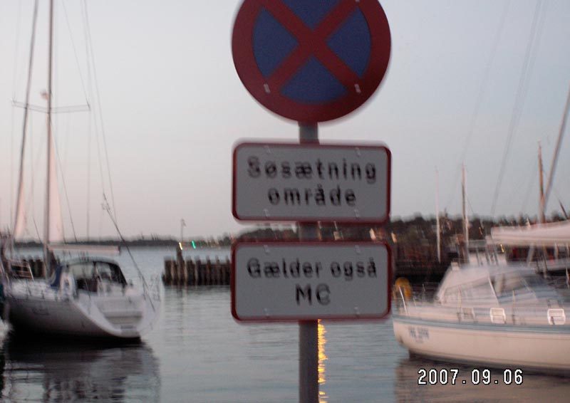 bommene. Bagefter opdagede jeg et nyt skilt hvorpå der stod, at der var søsætningsområde