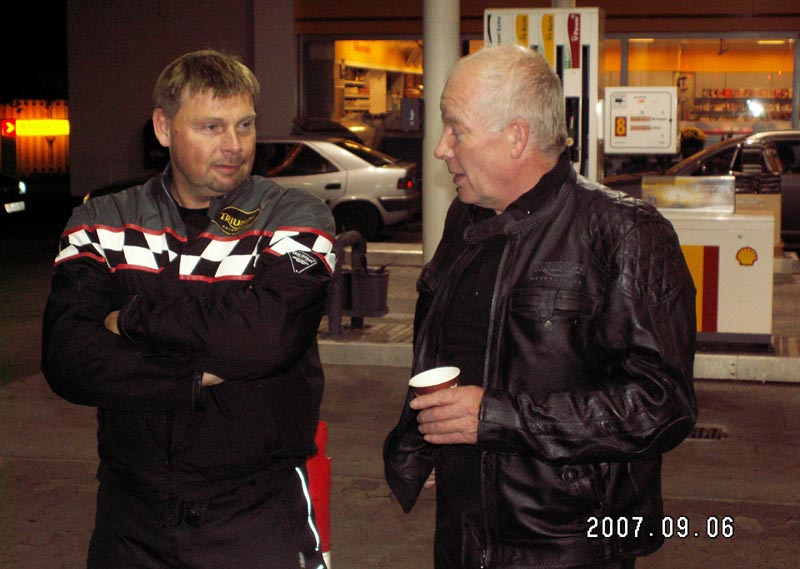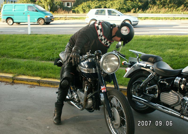Da jeg i god tid ankom til tanken i Ballerup var Hans på en sort/rød Bonneville -05 og