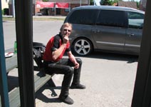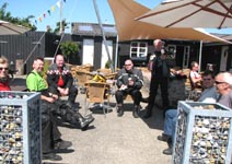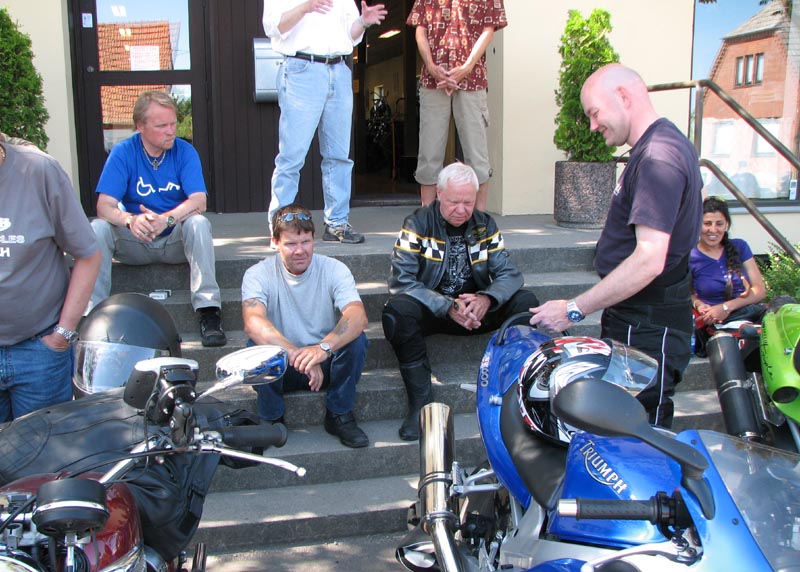 Da vi hade set alle motorcykler så slappede vi af på trappen foran museet. Her snakkede