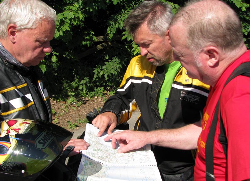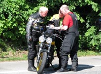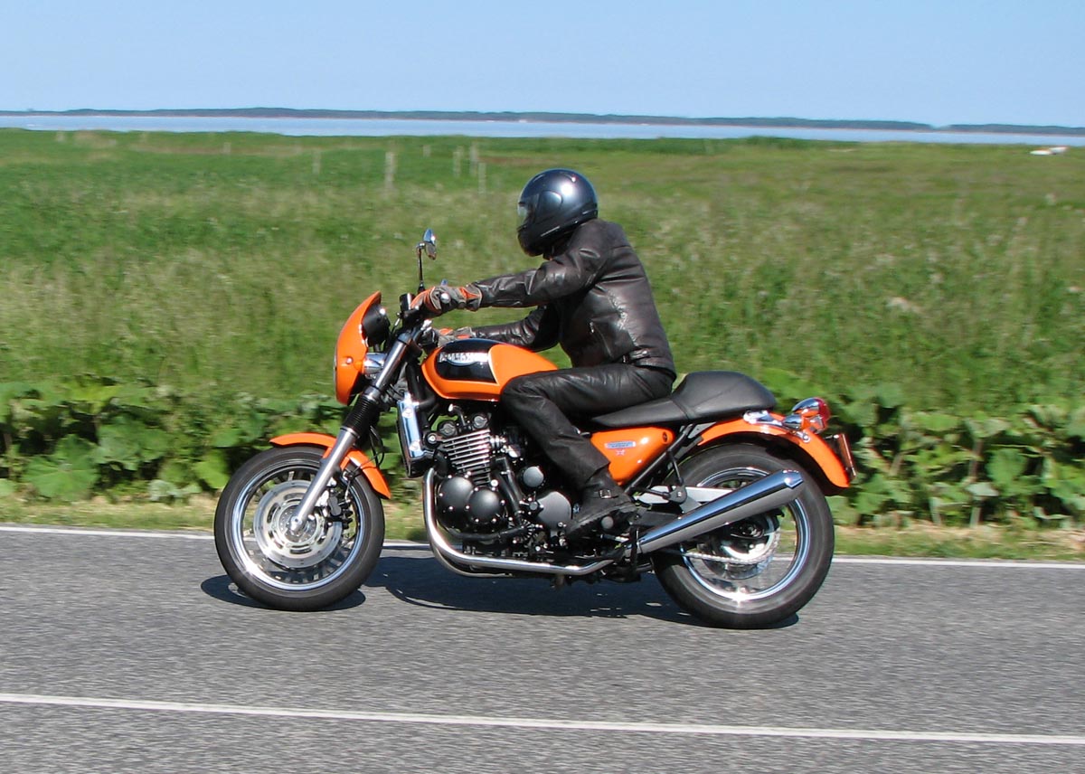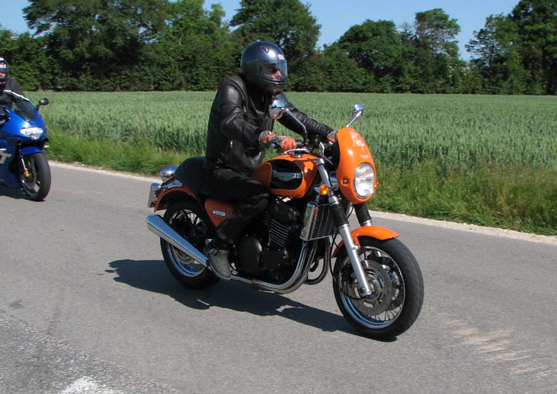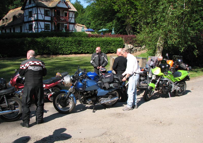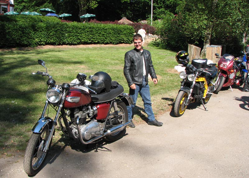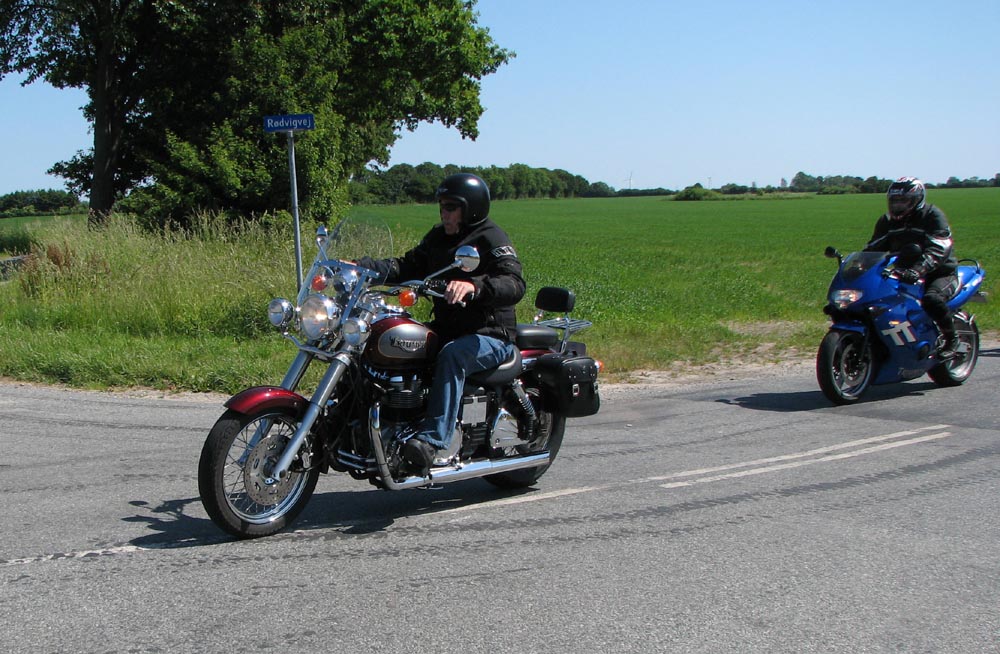 Speed Triple -98, Steen på den røde Bonneville -68, Bjørn på den orange Thunderbird