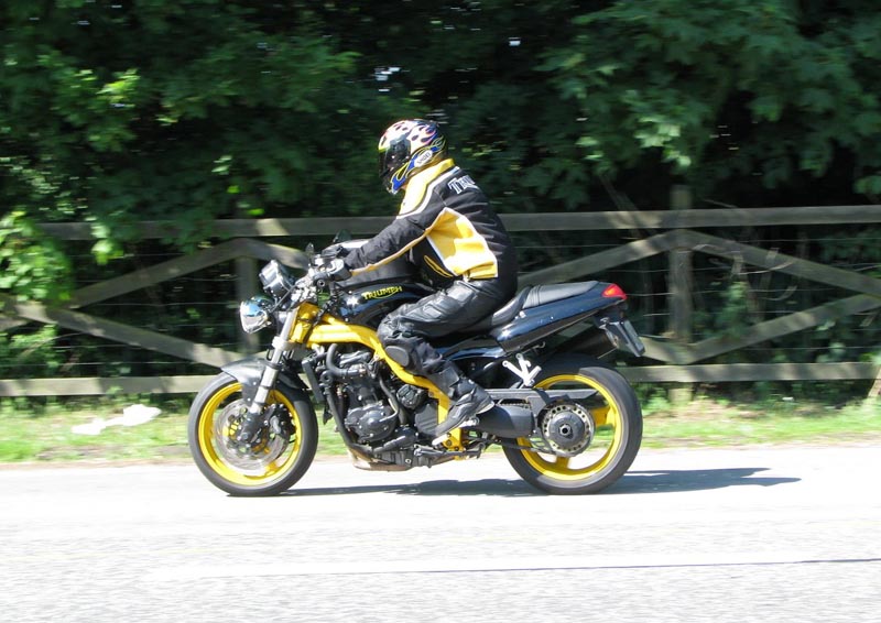 Sport -02, og Kristoffer på den sort/gule Speed Triple -01.