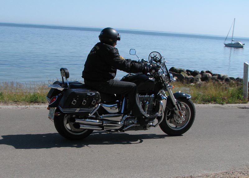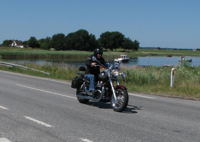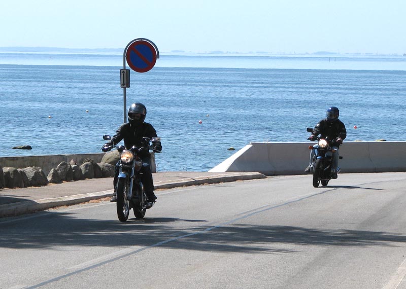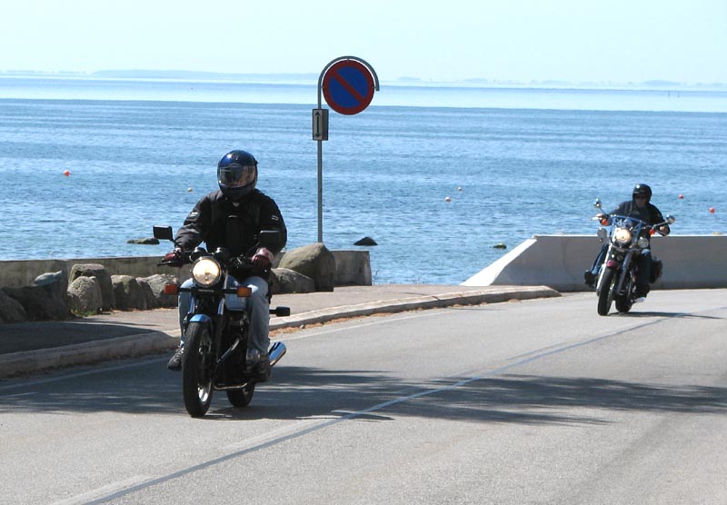 til Strøby Egede og en tur langs stranden. Her vinkede Jørgen farvel på sin Rocket III,