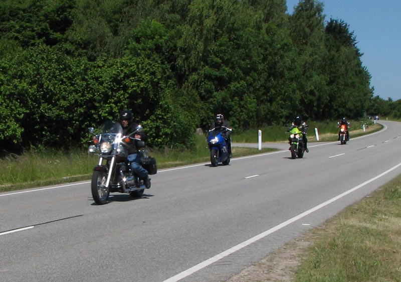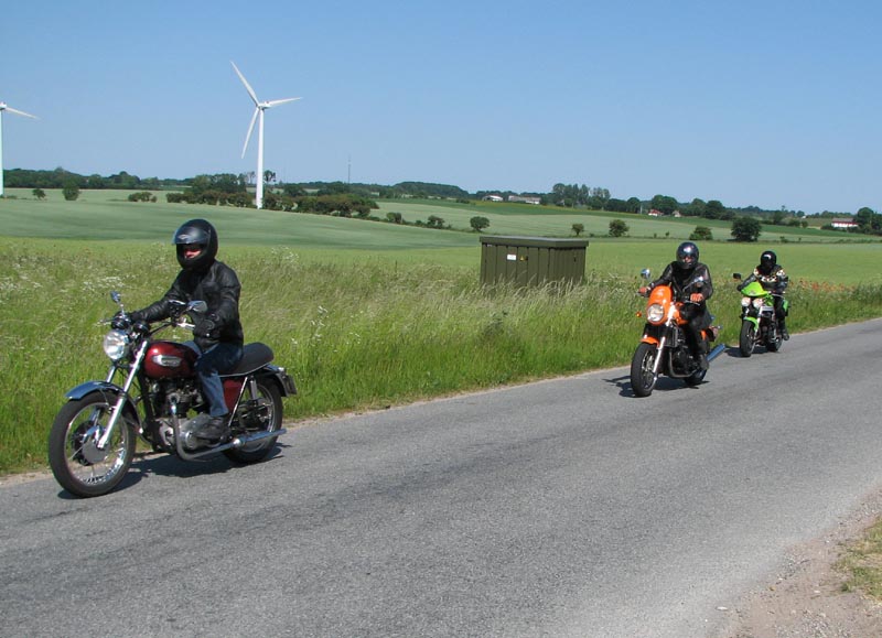 den rød/sølv America -05, Jørgen på den sorte Rocket III -06, John på den grønne