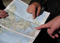 Forneden kort over turen sydpå.