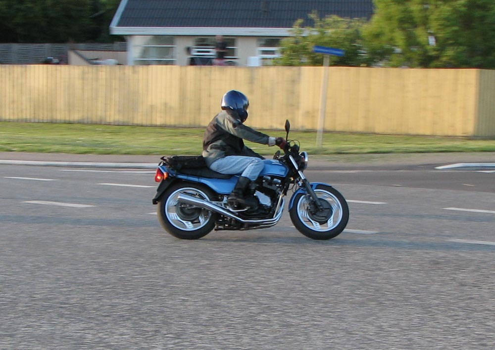blå TT 600 -02, og lidt senere buldrer det rundt om hjørnet. Er det en amerikaner V8?