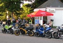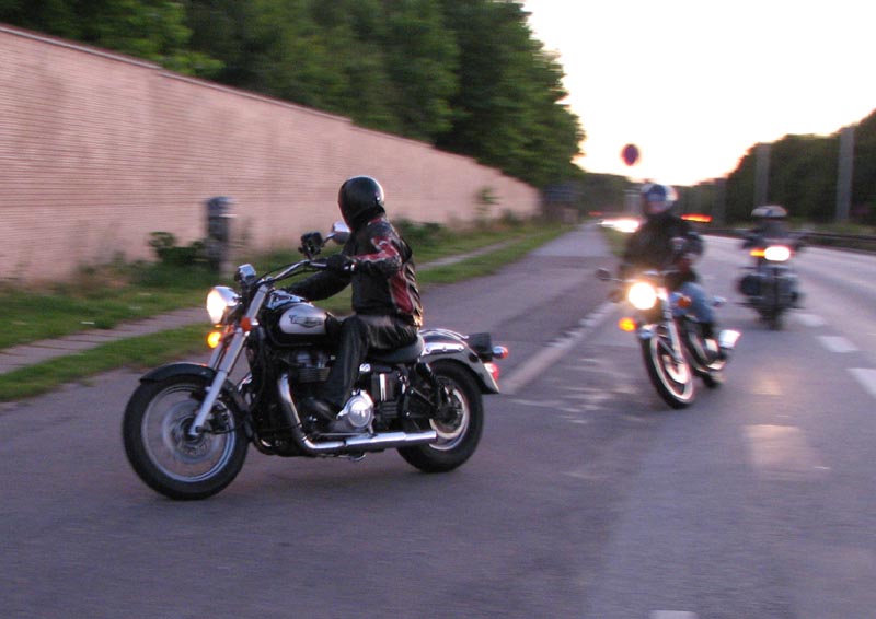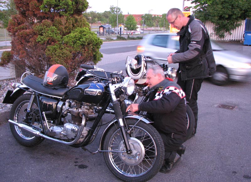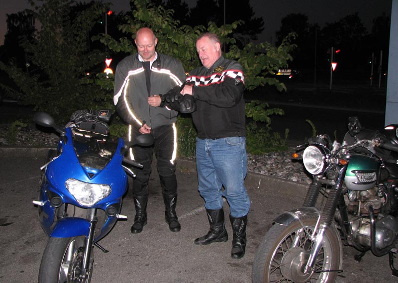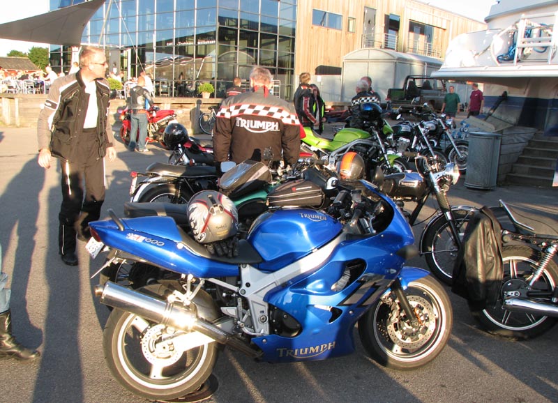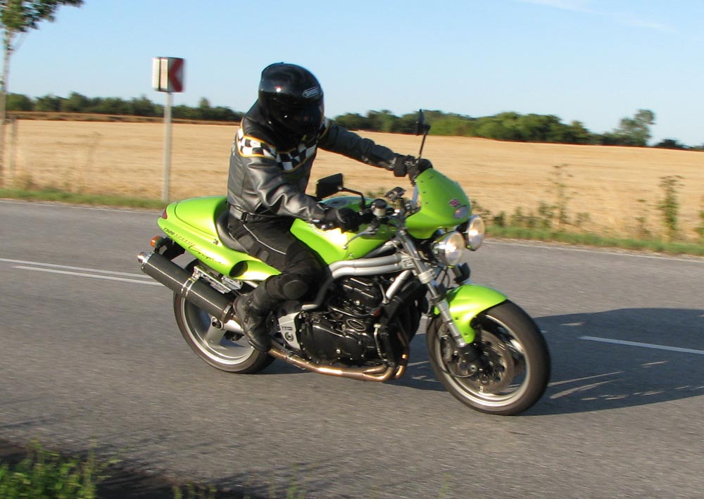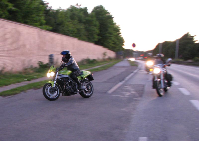 John på en grøn Speed Triple -98, mig selv på en sort/gul Speed Triple -01,