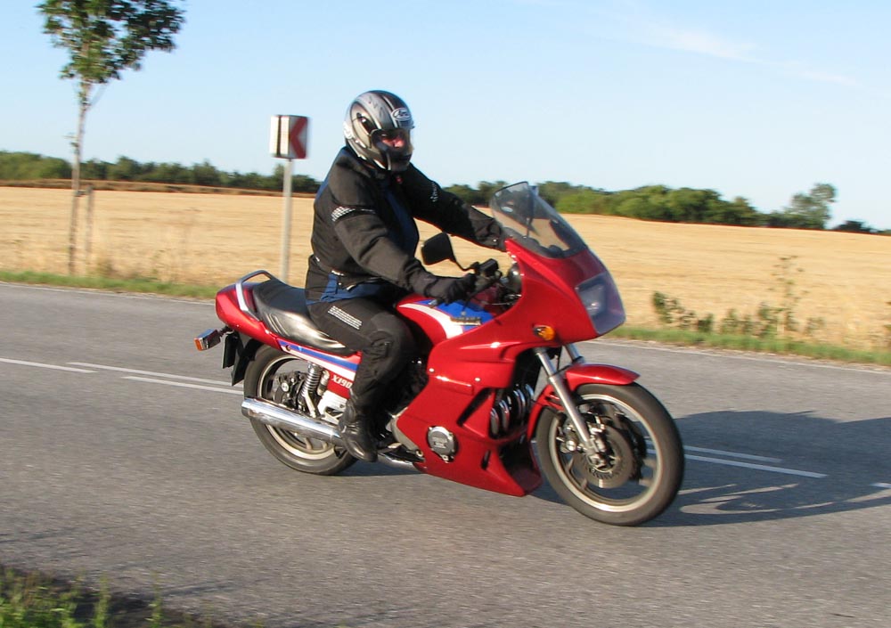 på en sort MC. Nogle nærbilleder og close-ups er lavet med en XJ900 fordi den er større,