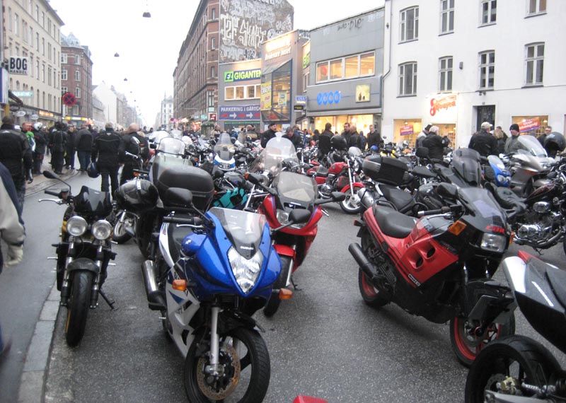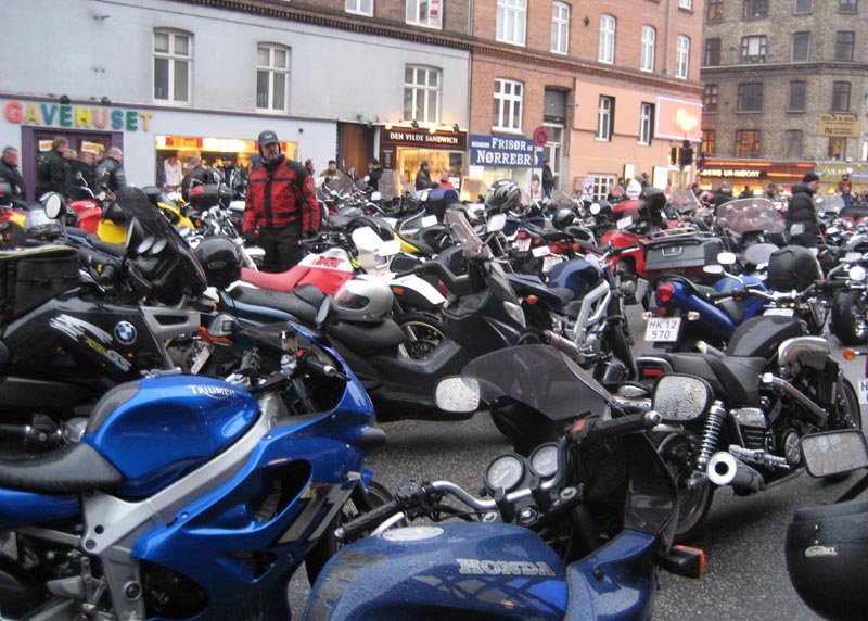 Nå, men trods det dårlige vejr så var der kommet rigtig mange motorcykeler til Nørrebrogade.
