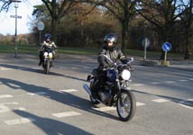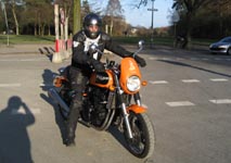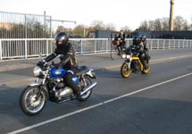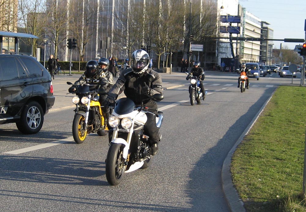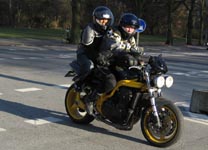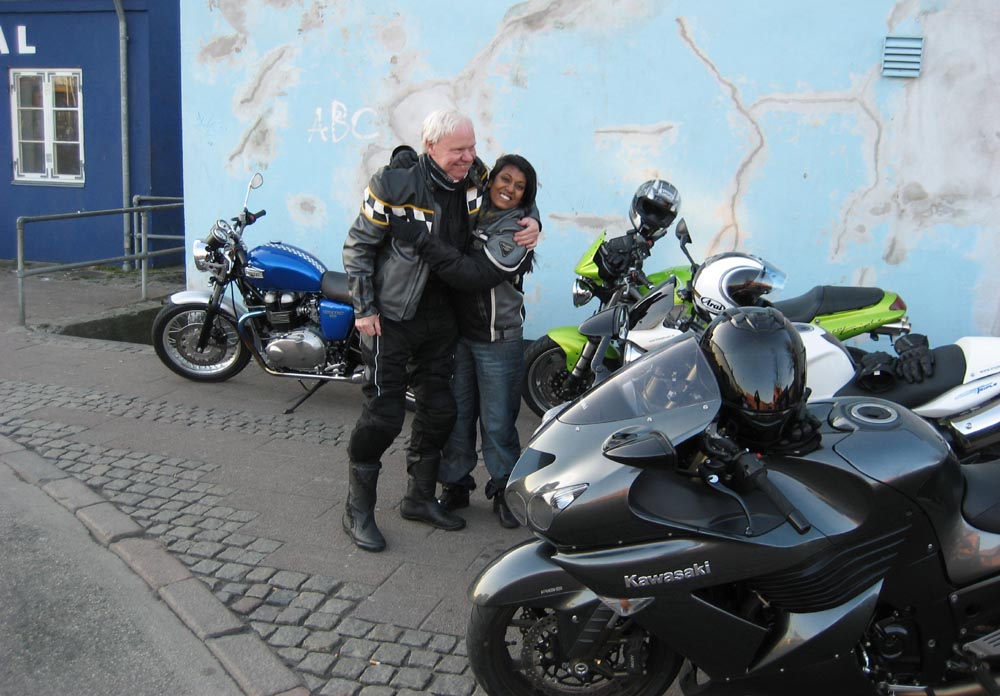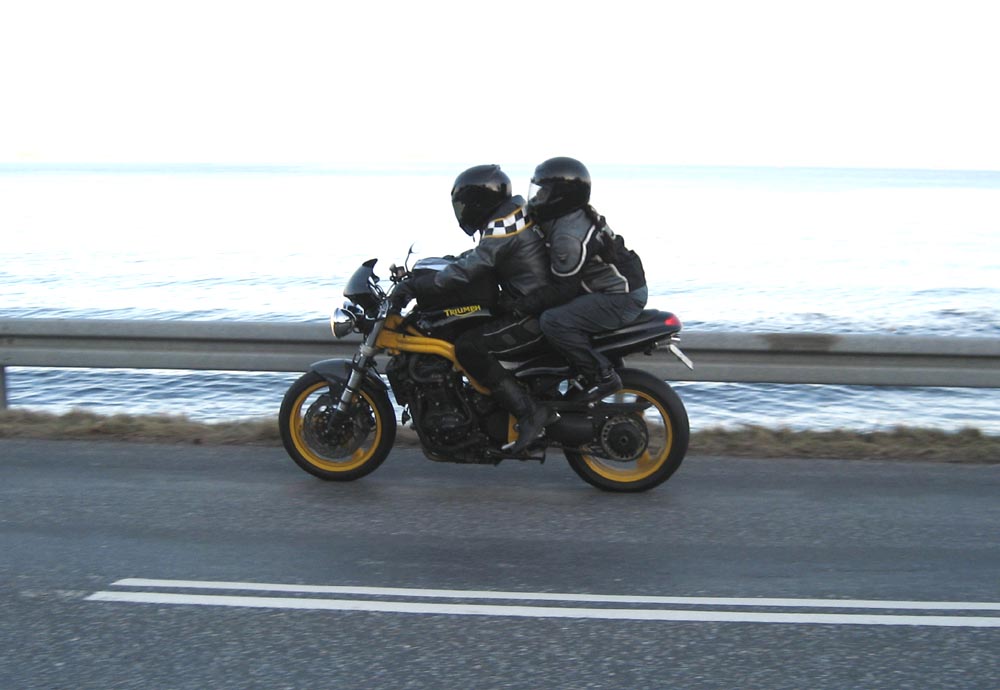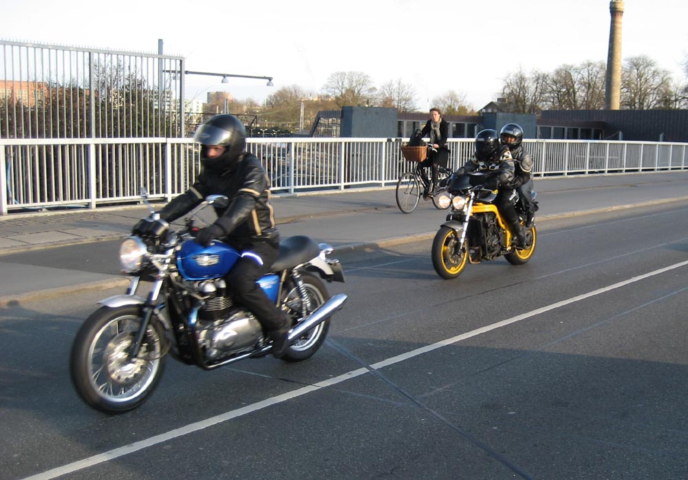 OK, John, vi bytter mc. Du må tage Josefine bagpå min sort/gule Speed Triple. Den er