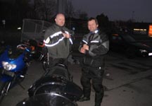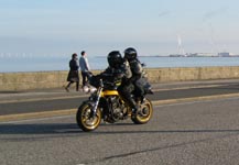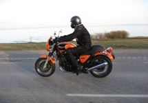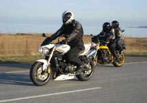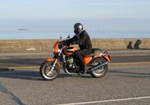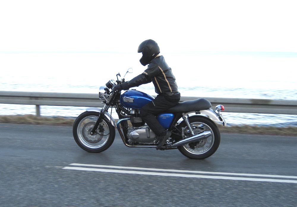 Steen på sin blå Thruxton -06. Og så er der Bjørn på den orange Thunderbird Sport -02.
