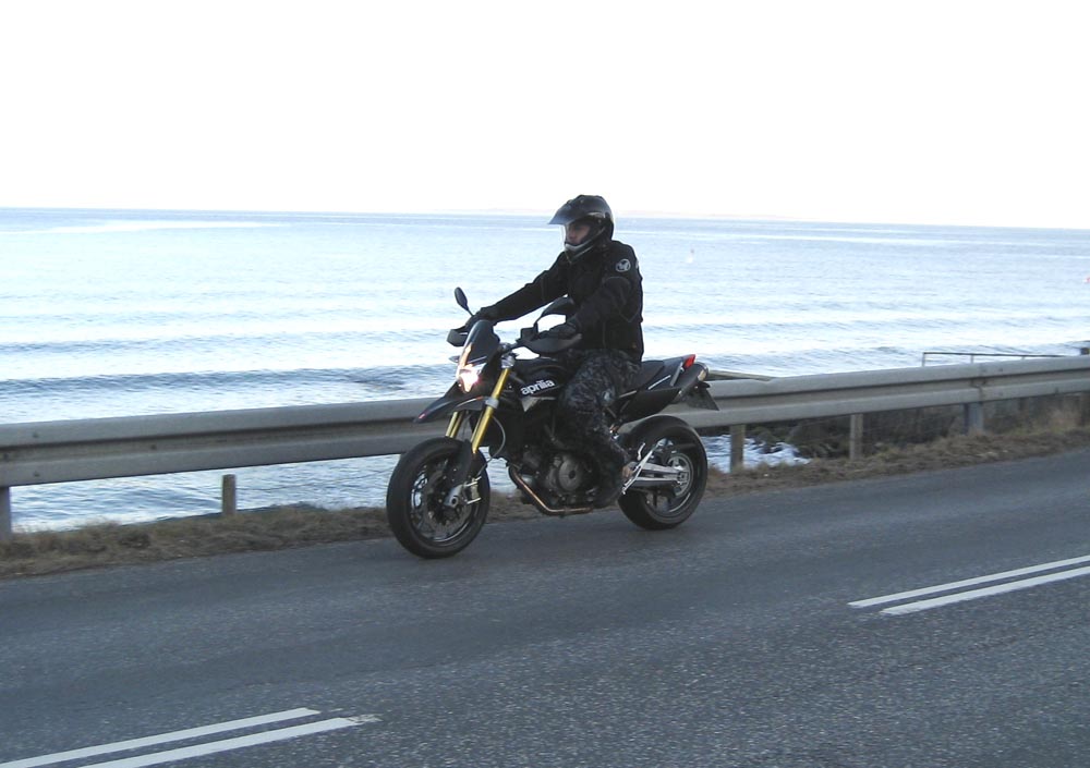 autobahn raket fra -07. Frans på en split ny Aprilia Dorsoduro 750. Fed cykel.
