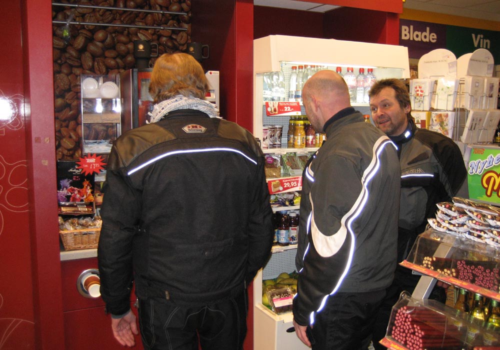 på himelen. Vi går ind på tanken og får varmt kaffe. Og så står vi snakker