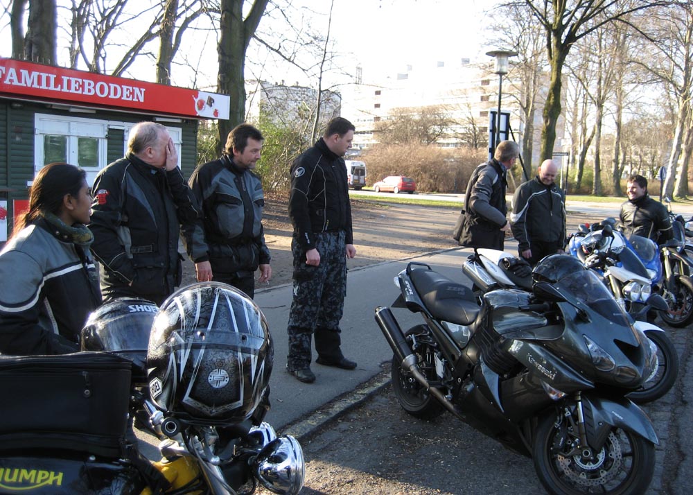 men fik forhinder. Synd. Men jeg kan se en hvid Street Triple 675 dreje ind til vores
