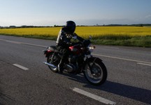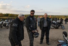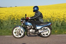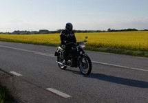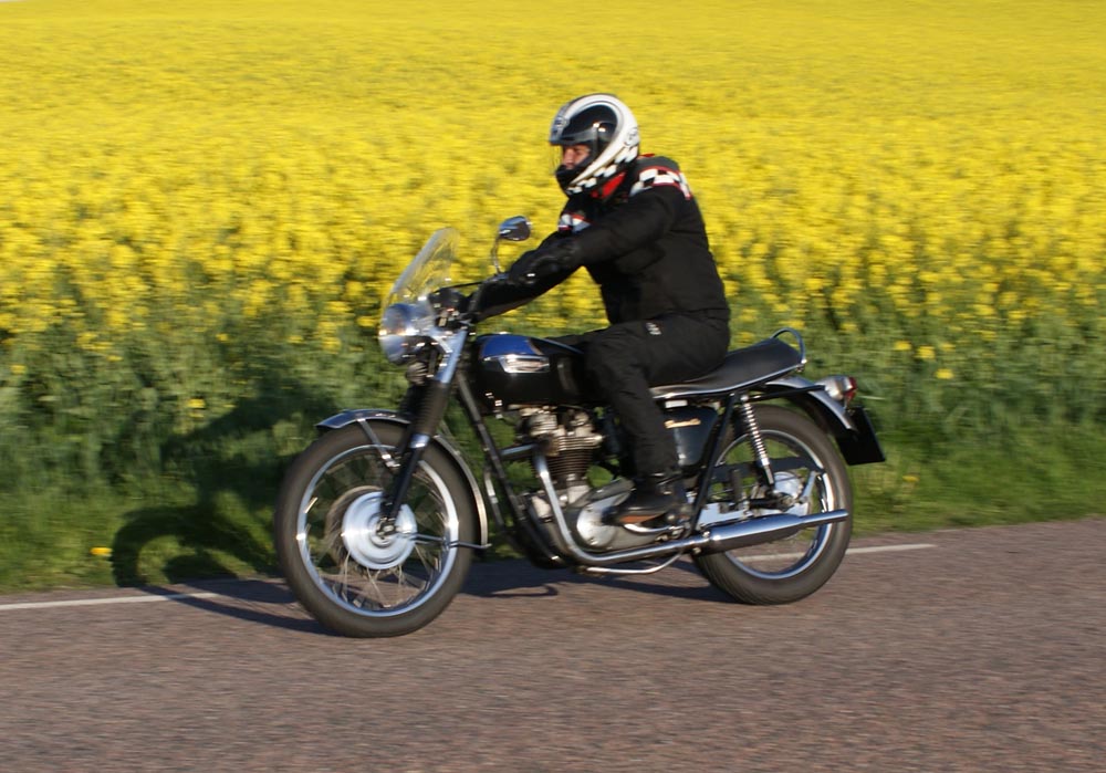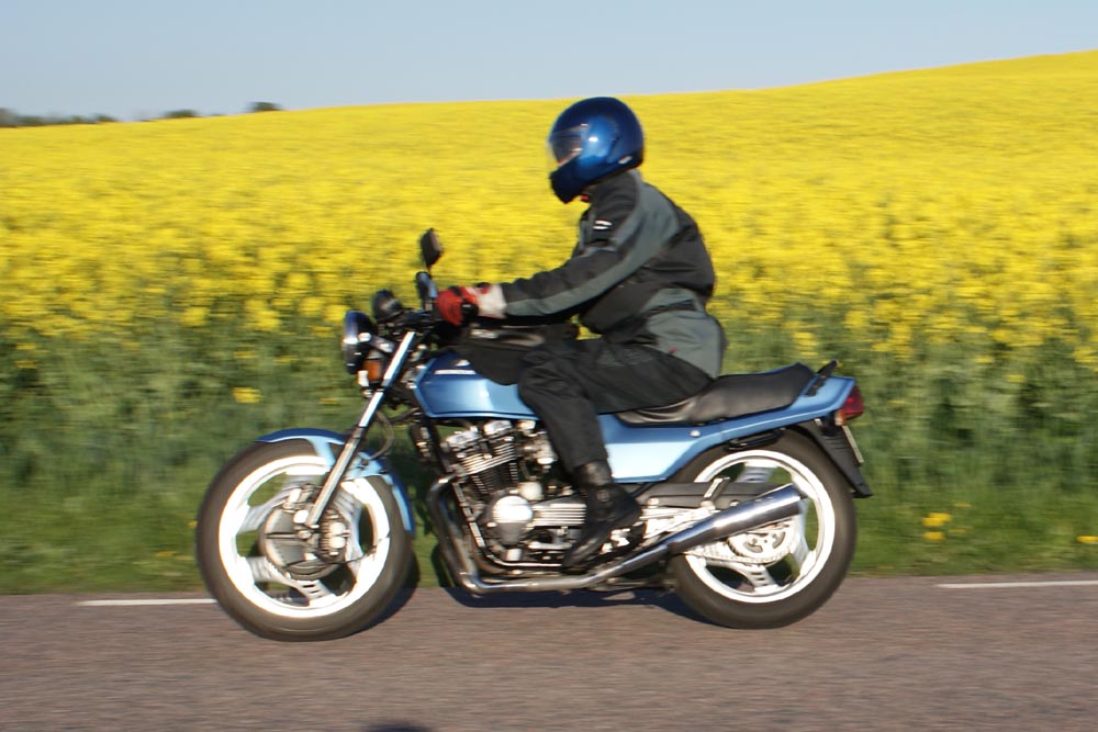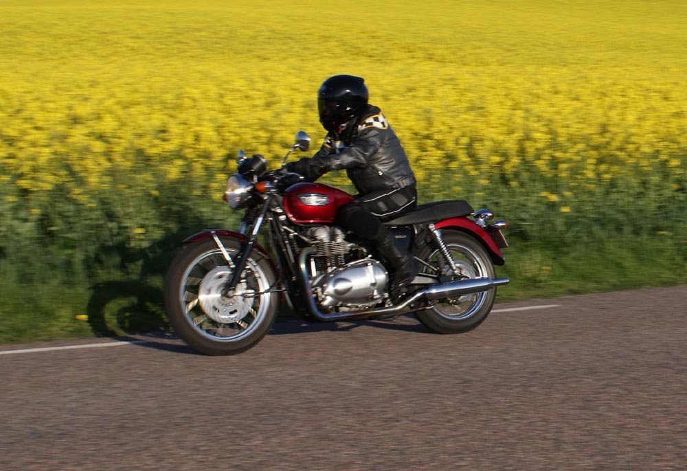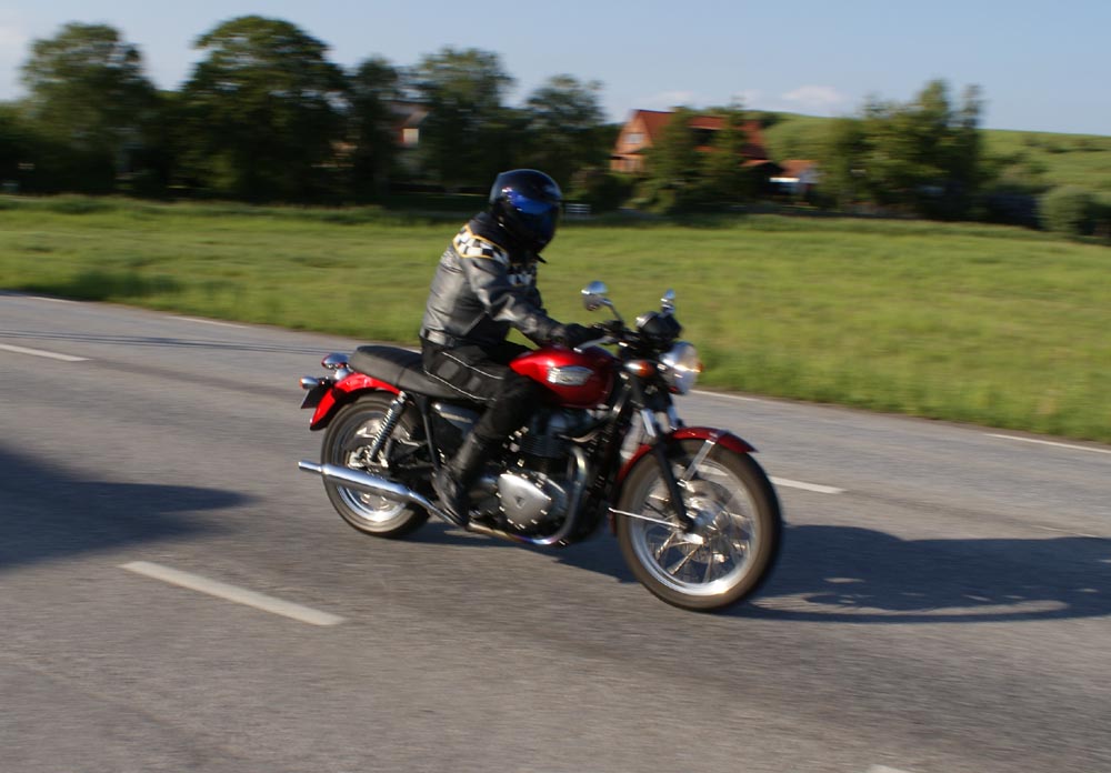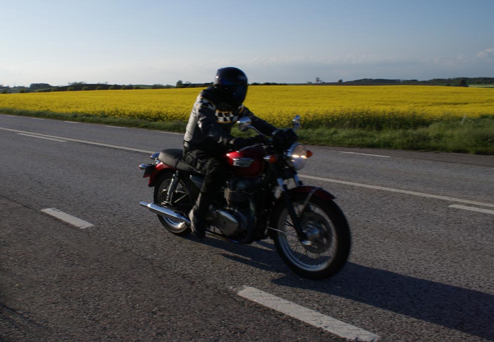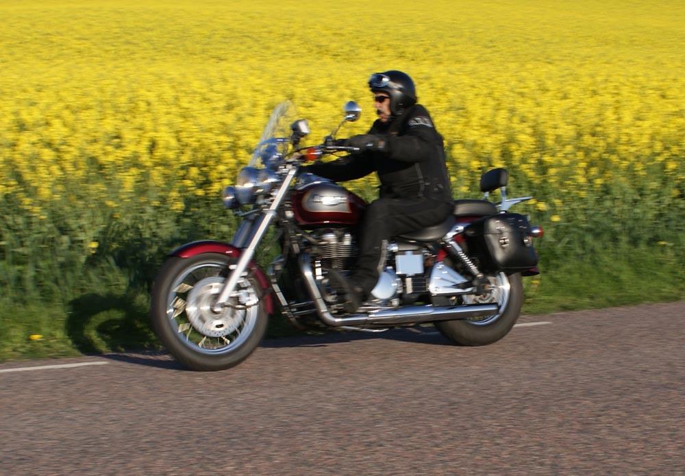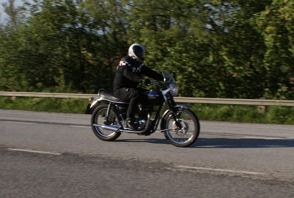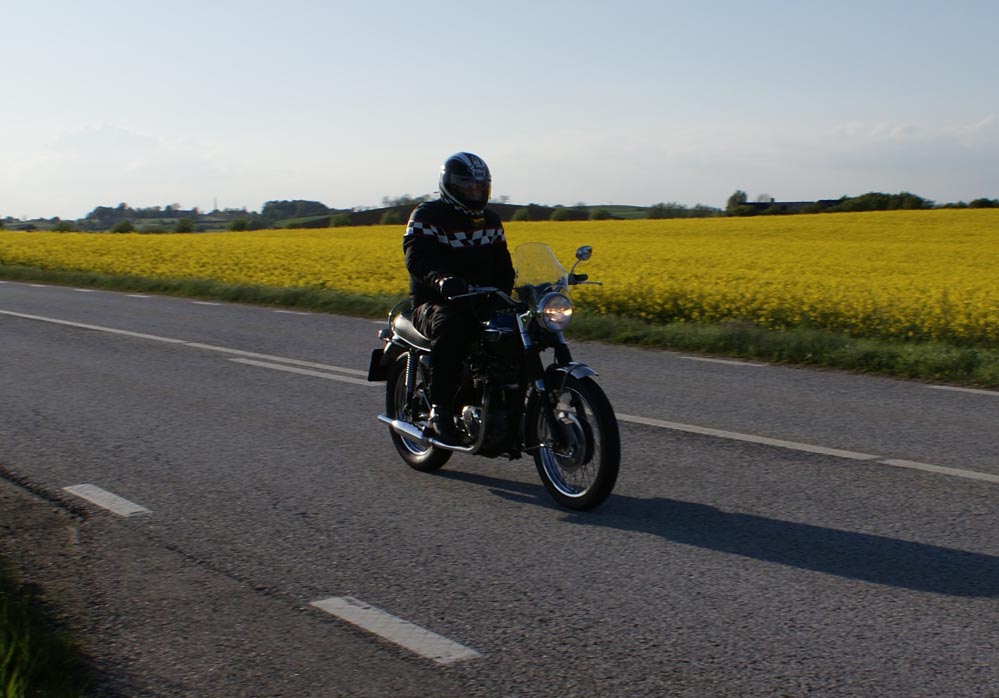 lyseblå CBX 550 -84, Peter på den røde America -05, Preben på den sorte Bonneville -69, John på en rød
