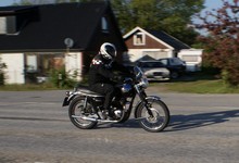 optaget med at køre frem og tilbage på vejen på baghjulet. Polisen stod lidt længere væk og