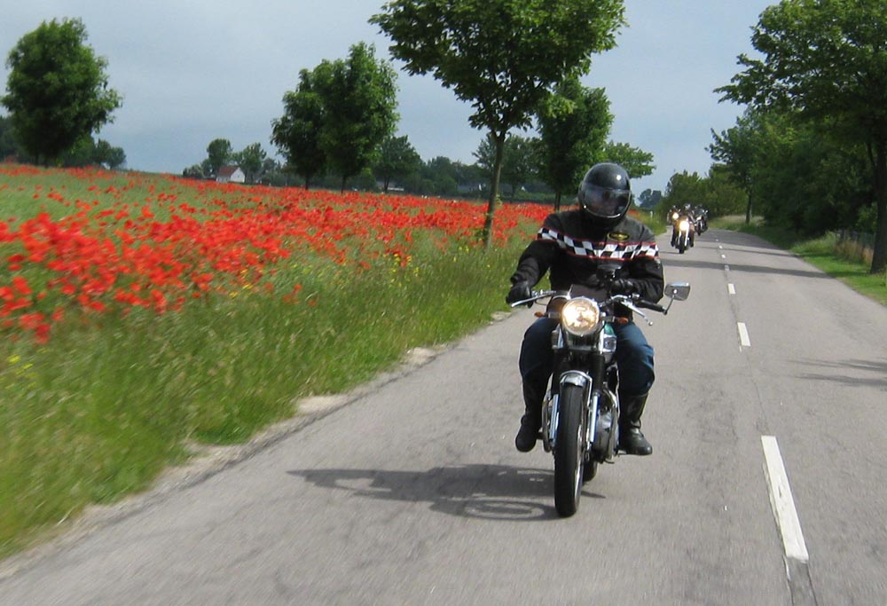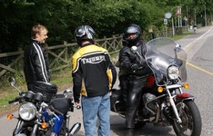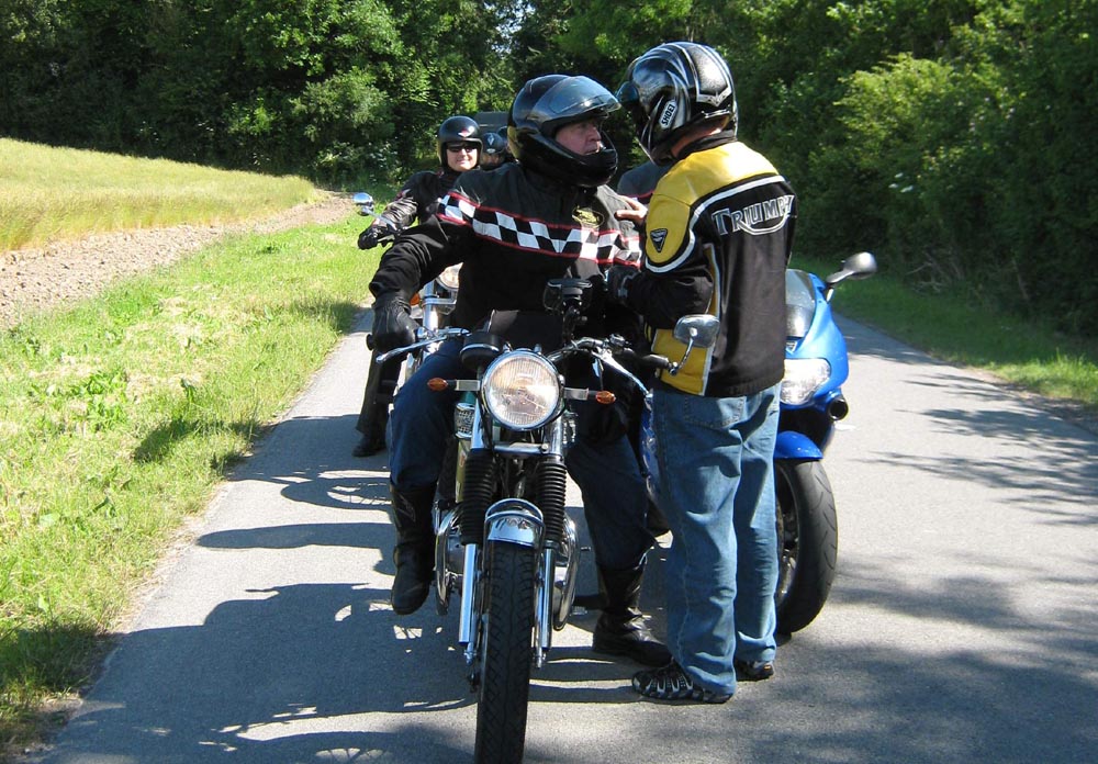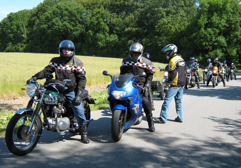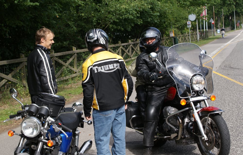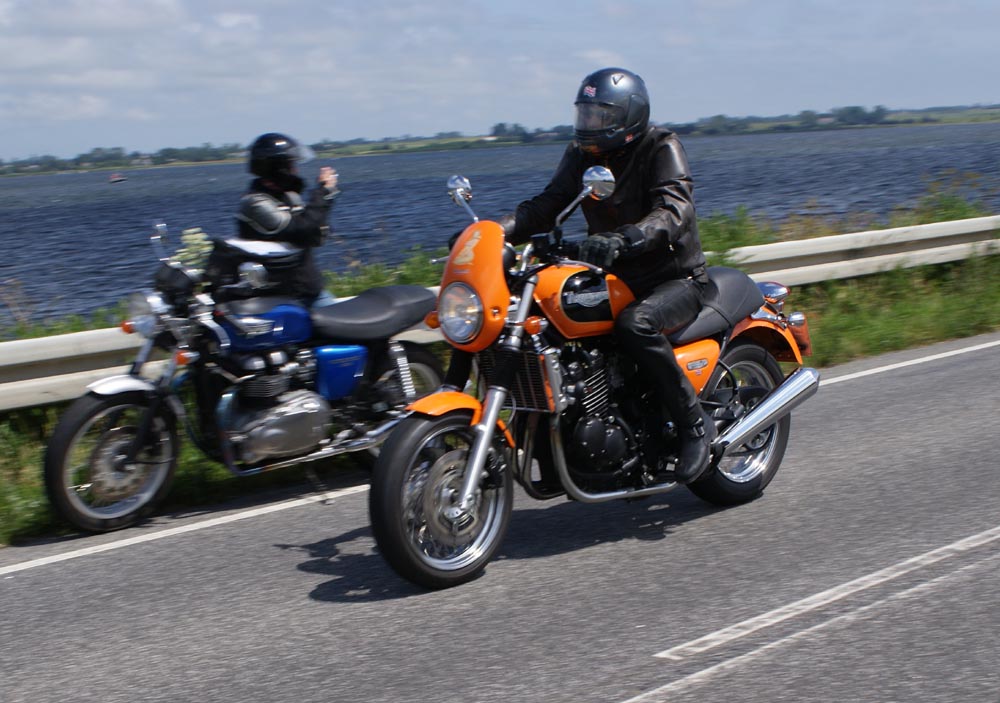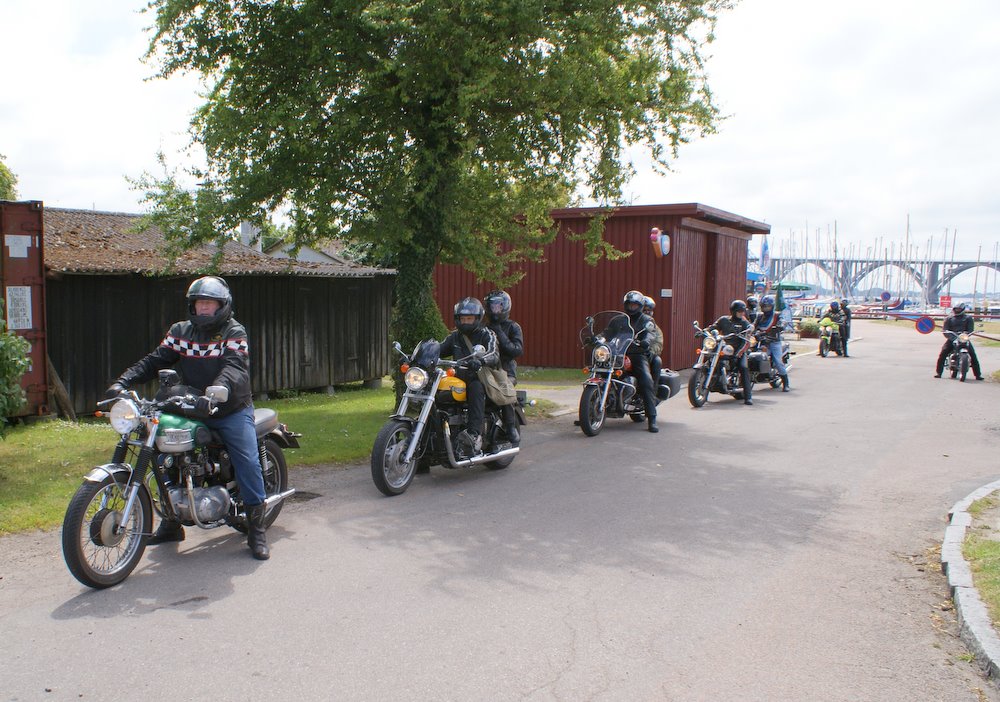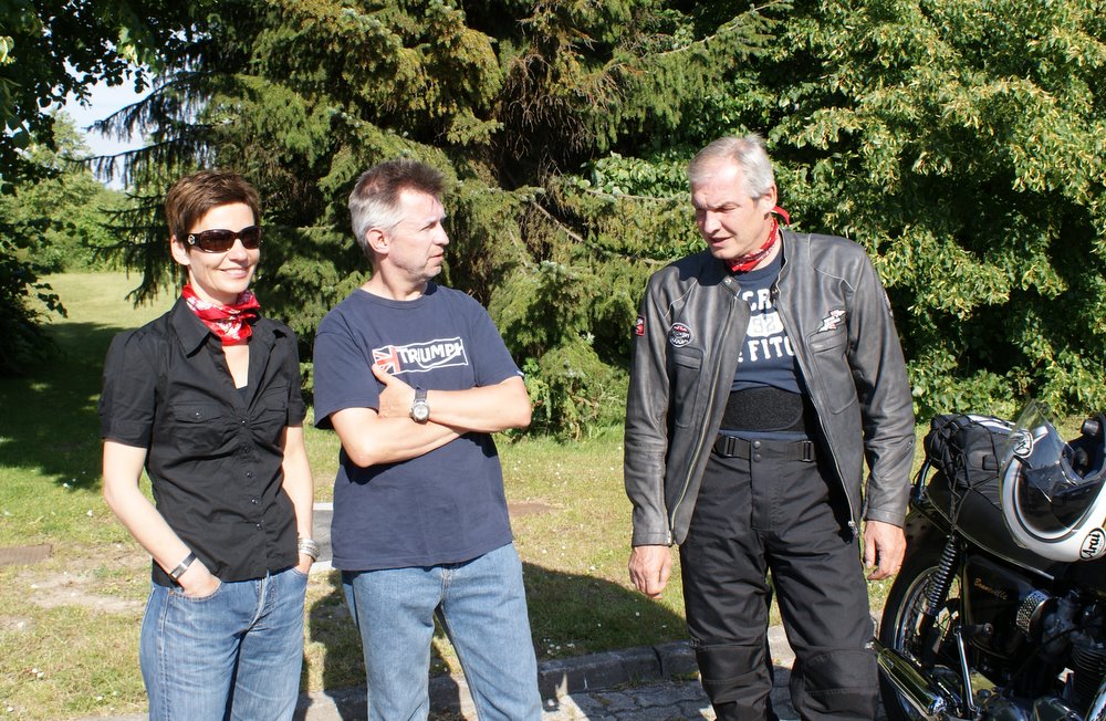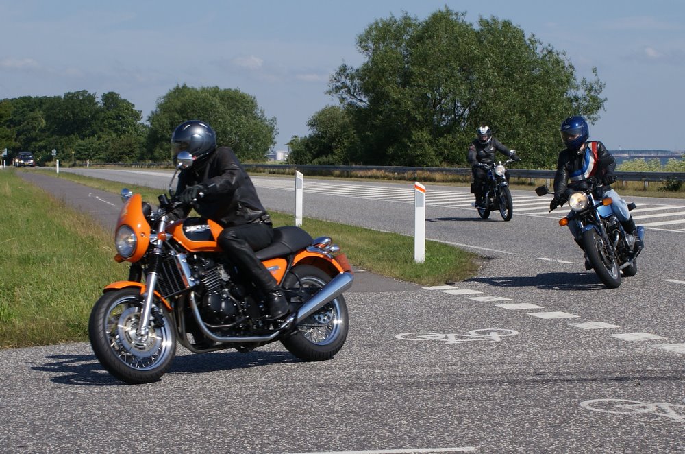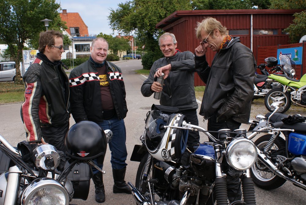 sorte Bonneville -69, Jan på den blå TT600 -02 og Martin på den sorte
